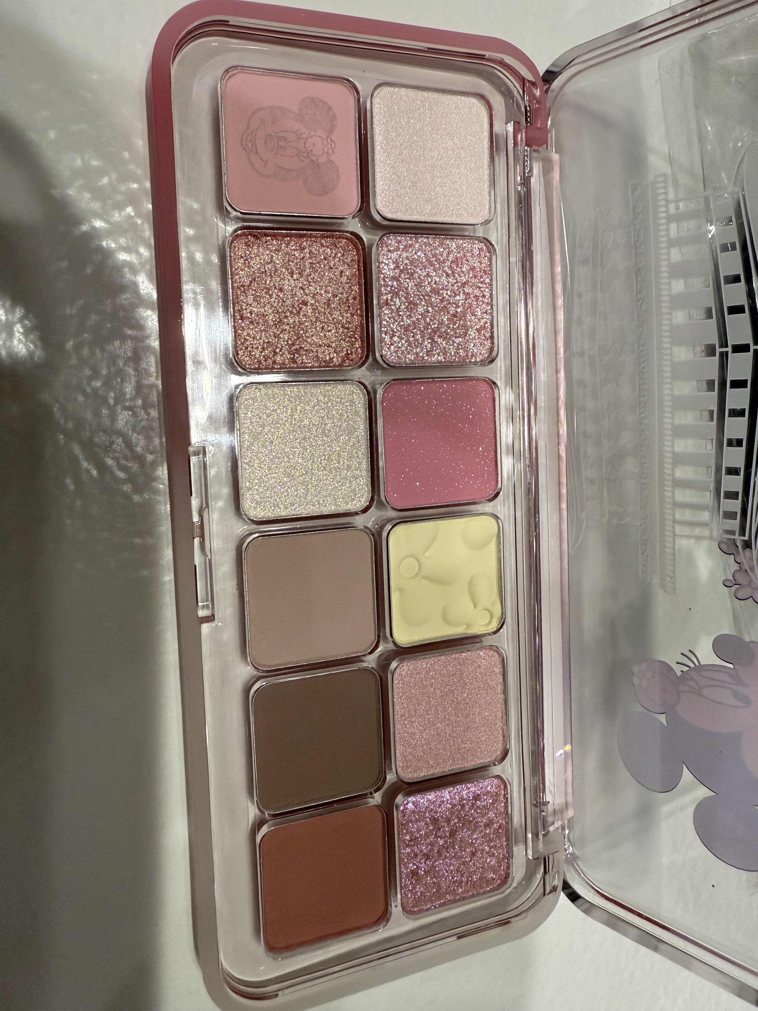 全てラメ入りのカラーでホリデーにピッタリなアイシャドウパレット✨ パーソナルカラー関係なく使いやすいニュートラルなローズピンクカラー◎ 日常使いしやすいニュートラルなローズピンクで全部ラメ入りだけどギラギラする訳では無いのでオフィスメイクにもデートメイクにも万能なアイシャドウパレット◎◎ 濃いブラウンにピンクラメが入っているカラーは出会ったことないので感動✨️ お気に入りは上段の真ん中の2色!