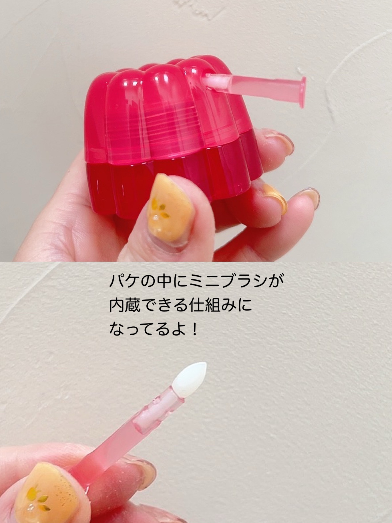 - プリンのような新感覚のチューイングテクスチャーに澄んだカラー感が加わったリップ&チーク。 ぷるぷるとしたゼリーのようなツヤ感が唇と頬にほのかに染まるウォーターリーグロウリップ&チーク。 甘いプリンのようにぷるぷるとした新感覚のチューイングテクスチャーで、べたつかず、なめらかに密着し唇にしっとりとした保湿感を与えます。 イエベ、ブルベの自分の肌トーンごとに使いやすい20色の多彩なカラーバリエーション、透明感のある澄んだカラーと鮮やかな発色、重ね塗りすればするほどあふれ出す、ほのかな水光リップへ導きます。 可愛いプリンのようなラブリーなパッケージで持ち運びが簡単!パッケージの中にはミニブラシが付いていて、衛生的に使えます。 ※ふんわりとしたゼリーテクスチャーの特徴により、固まりが生じることがありますので、薄くレイヤーを重ねて十分に塗り伸ばしてください。