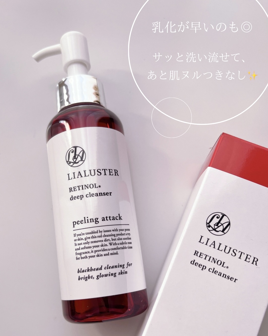 #LIALUSTER☑︎#レチノールディープクレンザーレチノール*で洗う新世代のリキッド状クレンジング重ねたメイクも汚れや古い角質も一緒に落とすᵕ̈*AHA(フルーツ酸)、BHA(サリチル酸)**成分で低刺激ピーリング。.。:+*゚サラッ...