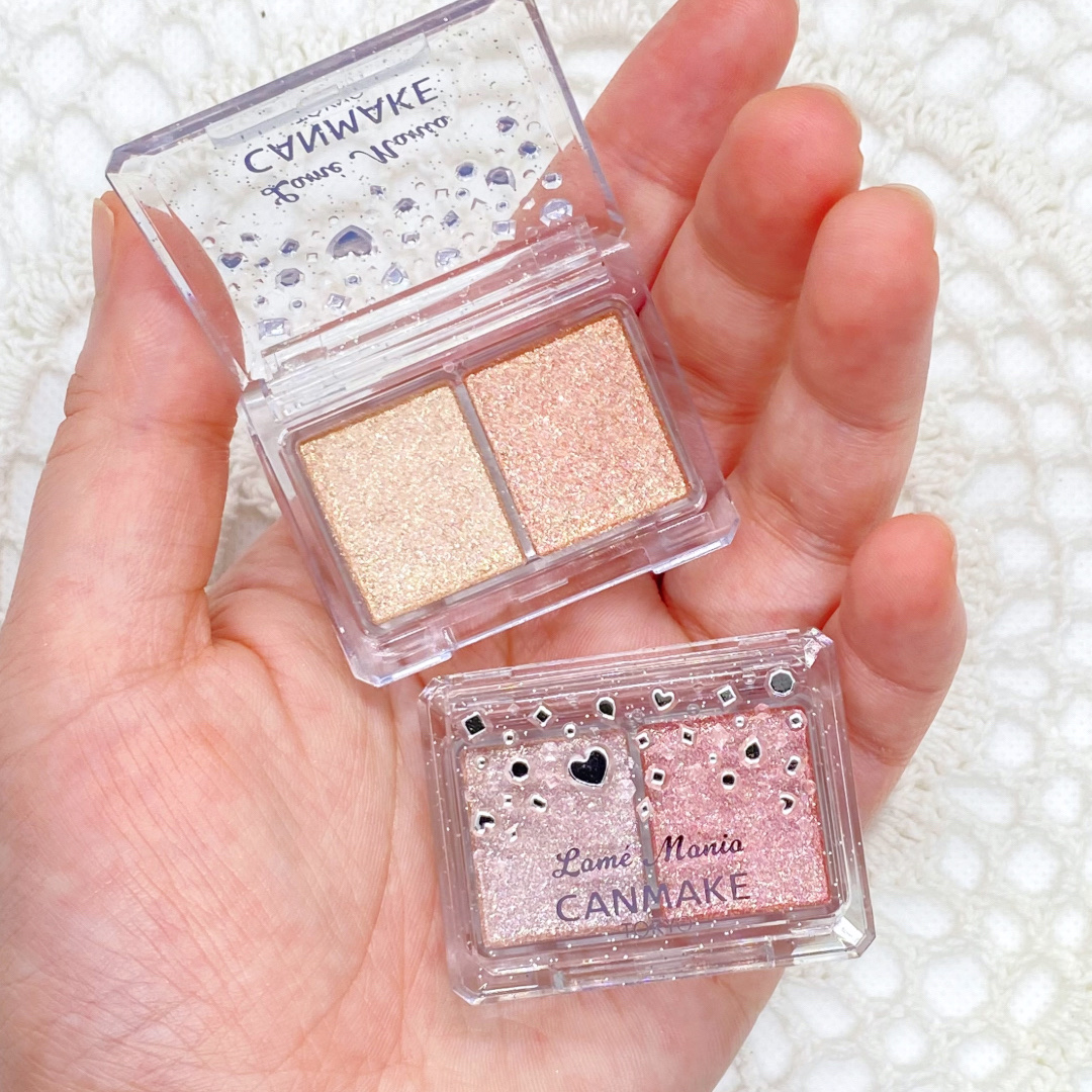 - ※03は2025年11月下旬よりロフト・プラザで先行発売。2026年3月下旬発売予定で2026年4月以降定番導入予定となります。 自分の気持ちを上げる♪ キャンメイク史上最もキラキラ!?ご褒美級ラメシャドウ✨ 高輝度、高密着! ラメ好きさんには是非使ってほしい✨ まるで発光しているかのように輝く大粒ラメアイシャドウです。 他のアイシャドウの上から重ねても濁らない 透明度の高いラメで、美しい輝きが楽しめます。 まるでラメの膜が張るようにぴたっと密着! ラメ飛びしにくく、キレイな仕上がりが長時間続きます。 【同系色の2色入り】 左:カラーレスメイクや、淡いアイシャドウに合わせやすいラメ 右:ほんのりベースカラーが発色する、華やかなカラーラメ
