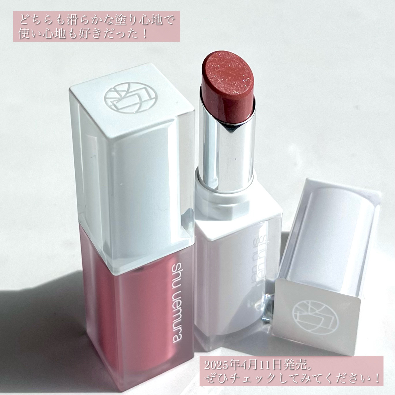 shuuemura⏦゚kinucarenudesgleam975kinucareglowupgleam938溜息がでるほど可愛いlip(・-・̥)🤍⟡.·シアー発色のトーンアップカラーで美容液をつけているような仕上がりに⏦゚香りが少しあって...