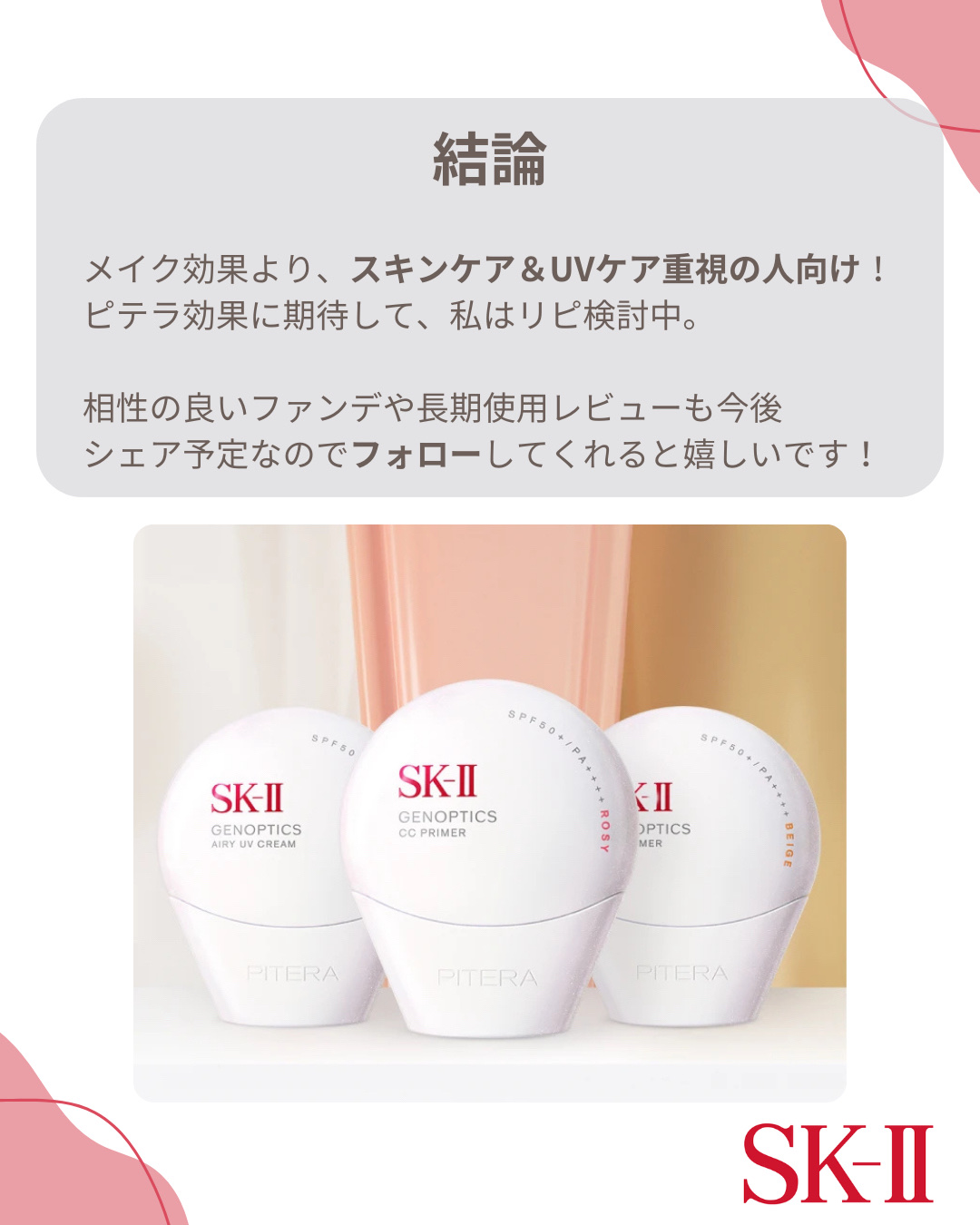 \SK-Ⅱの新プライマーやばくないですか…?🤩/▶︎SK-ⅡジェノプティクスCCプライマー ロージーピンクゲットしてました!SK-Ⅱの新しいCC🩷今までのも大好きだったんですが、今回は3つのカラーもあって人によって選びやすいのが良い!ジェノプ...