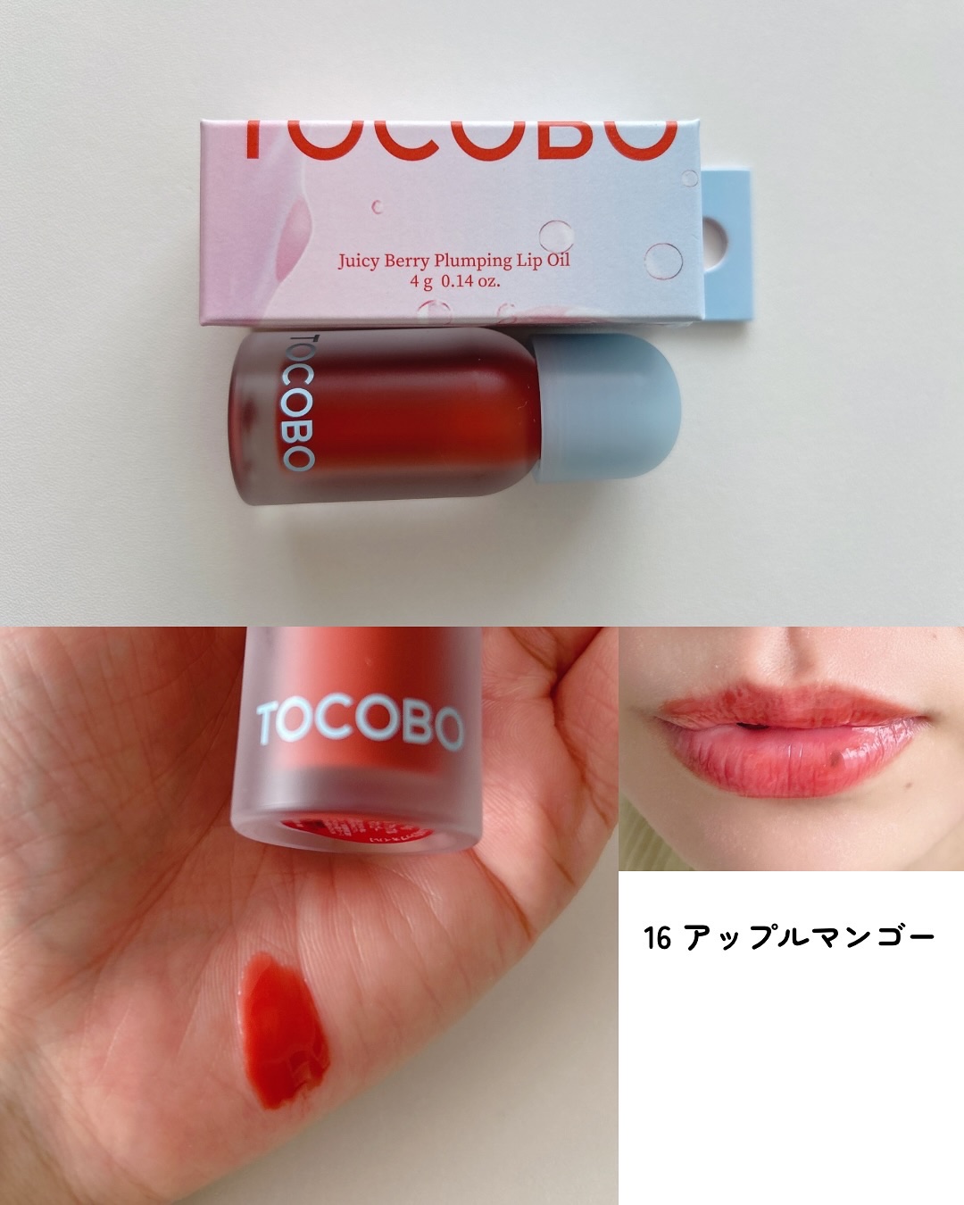 #PRトコボ(tocobo)@TocoboJP4月16日からアットコスメ大阪でポップアップ開催❣️ジューシーベリープランピングリップオイル唇の角質、シワをカバーするプランピング機能のリップオイル🧡ガラス玉みたいなぷっくりツヤツヤの光沢があって...