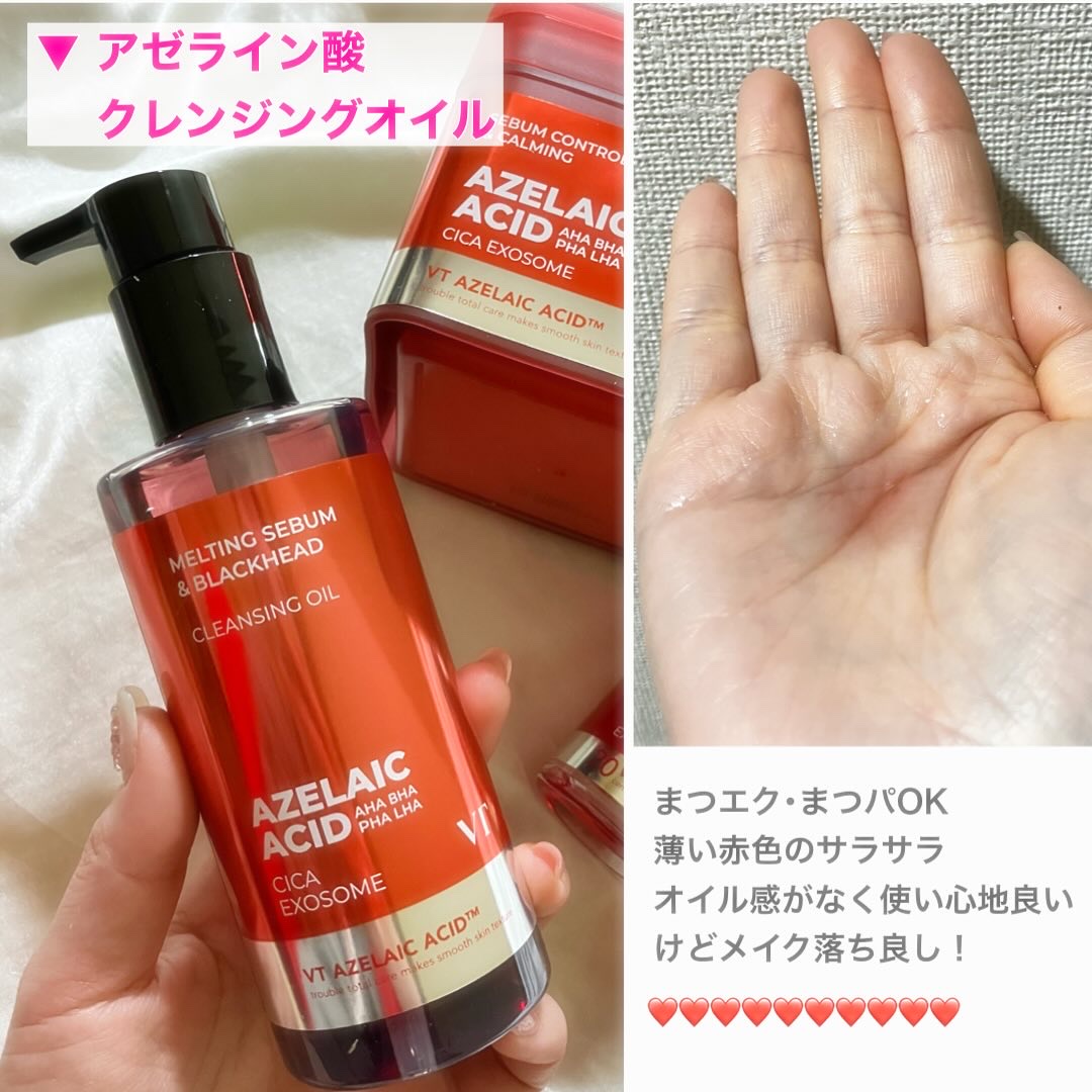 @vtcosmetics_japan様のモニターでいただきました皮脂・ニキビケアにおすすめのアゼライン酸三種の神器!アゼライン酸クレンジングオイルサラサラテクスチャーでメイクなじみも良しさっぱりした洗い心地でポイントメイクまでまとめてスッキリ...