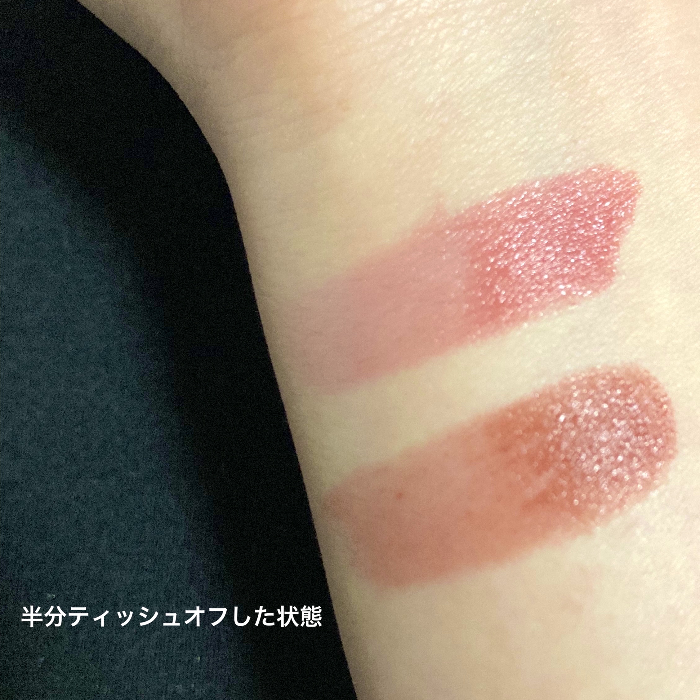 やや硬さが有りながらも、とろりと滑らかに 塗布しやすいリップ とろり塗りはスティックと近い発色となり 素の唇ながら、しっかりと色も感じる仕上がり どちらの塗り方でもシアー感が有り素の唇から 離れ過ぎず浮かない仕上がり