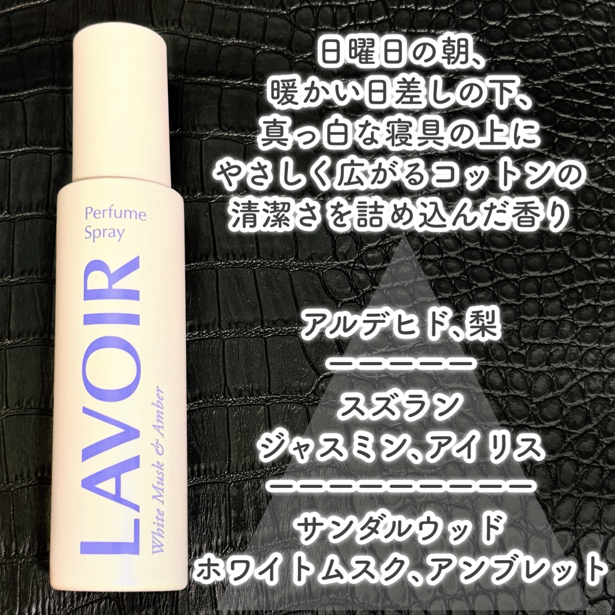 ▪︎LAVOIRラヴア パフュームスプレー ・ホワイトムスク&アンバー ・プルメリア&ガイアック ﹏﹏﹏﹏﹏﹏﹏﹏﹏﹏﹏﹏﹏癒される香りが広がる、LAVOIRのパフュームスプレー🫧ルームスプレーとしてはもちろん、衣類やカーテン、枕もとにもひと...