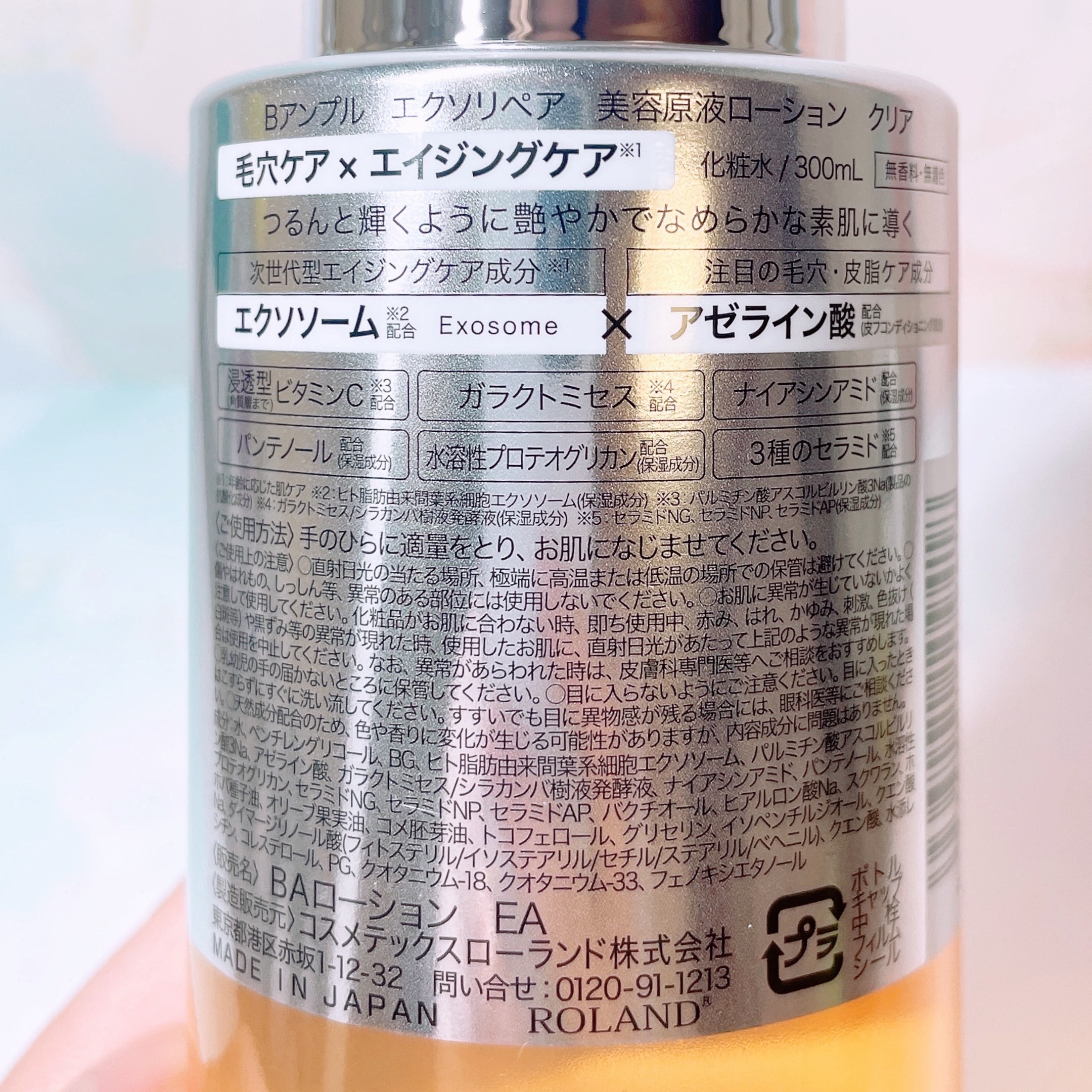 Bアンプルエクソリペア美容原液ローションクリア最先端のスキンケア成分、エクソソーム×アゼライン酸配合の毛穴対策化粧水。皮脂・毛穴詰まりに集中アプローチし、つるんと触り心地の良いなめらかな素肌に導いてくれるそう水のようにサラっとしててバシャバシ...