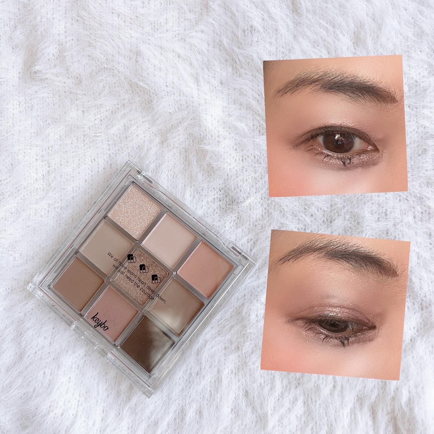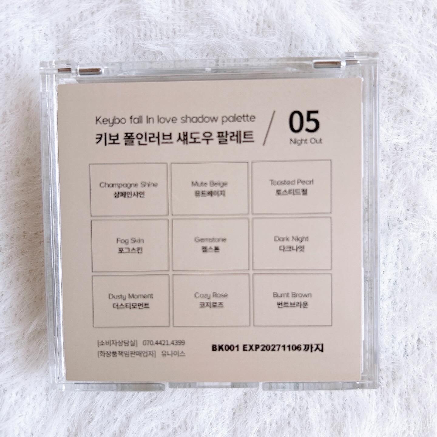 keyboFALLINLOVEアイシャドウパレット05@keybo_cosmetic@keybo_jpベース、シャドウ、ポイントグリッターまでそろった9色パレッド。ナチュラルなカラーから締めの色まで入っておりポイントのラメ、グリッターで遊べる...