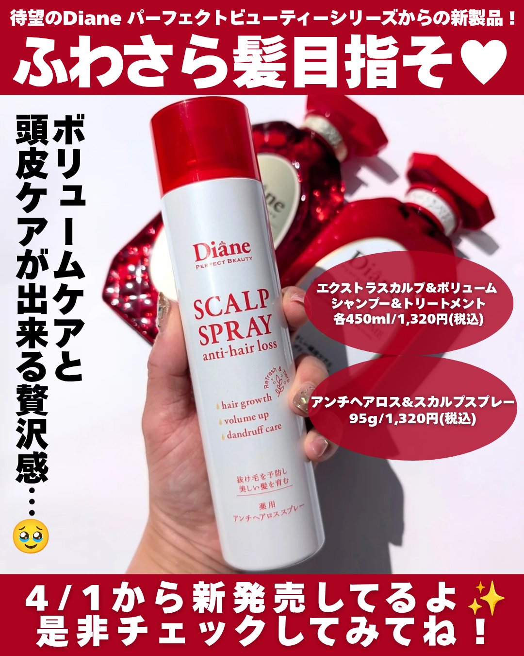 -`📢⋆美髪を作るには抜け毛予防もできるスプレーを‼️▶ダイアンエクストラスカルプ&ボリュームシャンプー&トリートメントセットダイアン薬用アンチヘアロス&スカルプスプレーDianeパーフェクトビューティーシリーズから2025年4月1日に新発売...