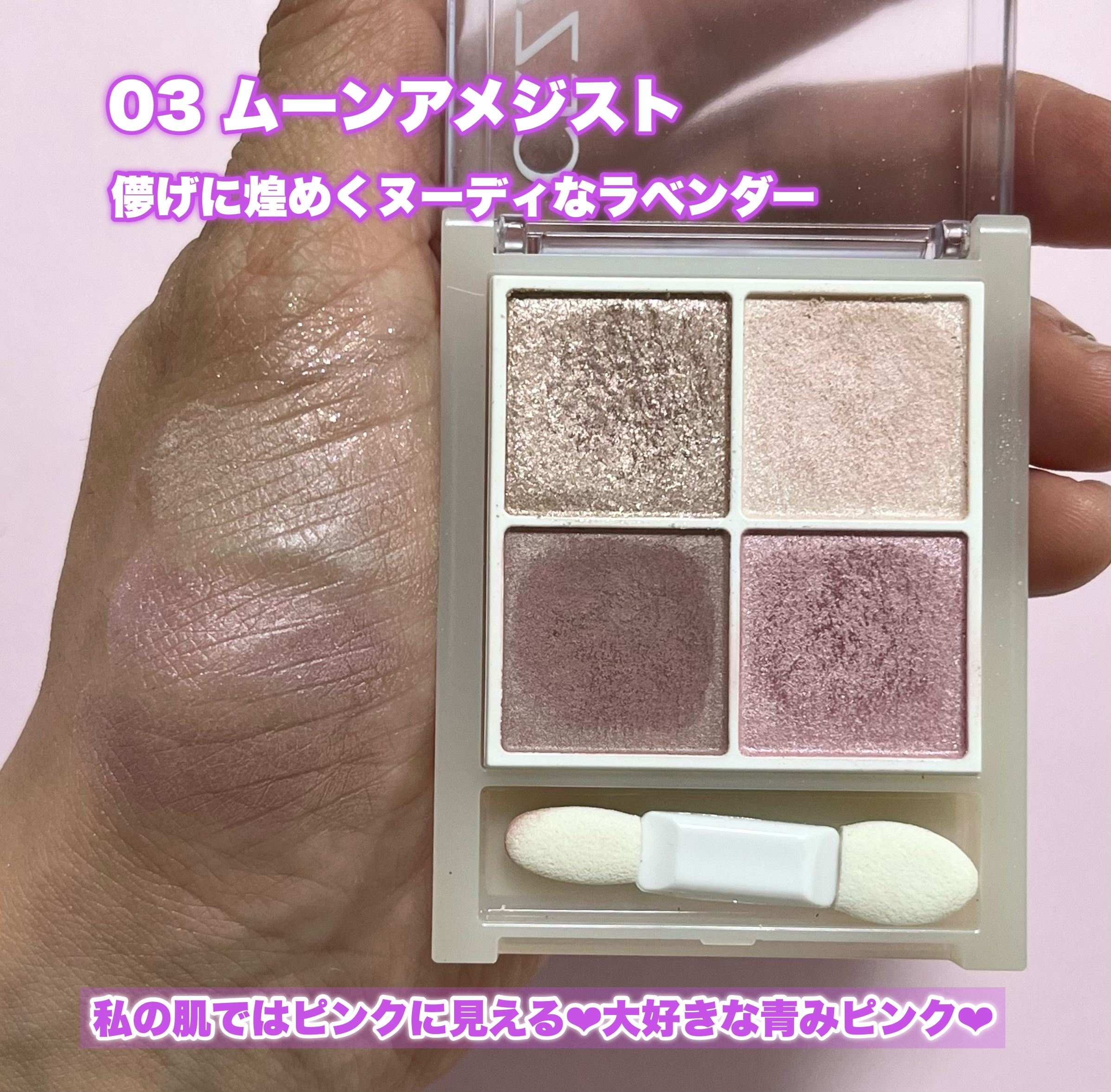まろやかなペールカラーアイシャドウ🫶🏻 淡い発色で失敗しにくいのでメイク初心者さんにもおすすめ◎ 3つの質感とまろやかな色のグラデーションで透明感+奥行きのある目もとに仕上げてくれます。 プチプラなので学生さんなどにもおすすめです。