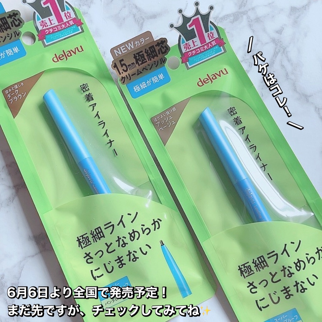 「デジャヴュ」さまから商品提供をいただきました。〈デジャヴュ〉「密着アイライナー」極細クリームペンシルアッシュベージュ¥1,3202025年6月6日発売🧡“極細ライン”がスルスル描けて、皮脂・汗にもにじまず、目もとを自然にくっきり際立たせる「...