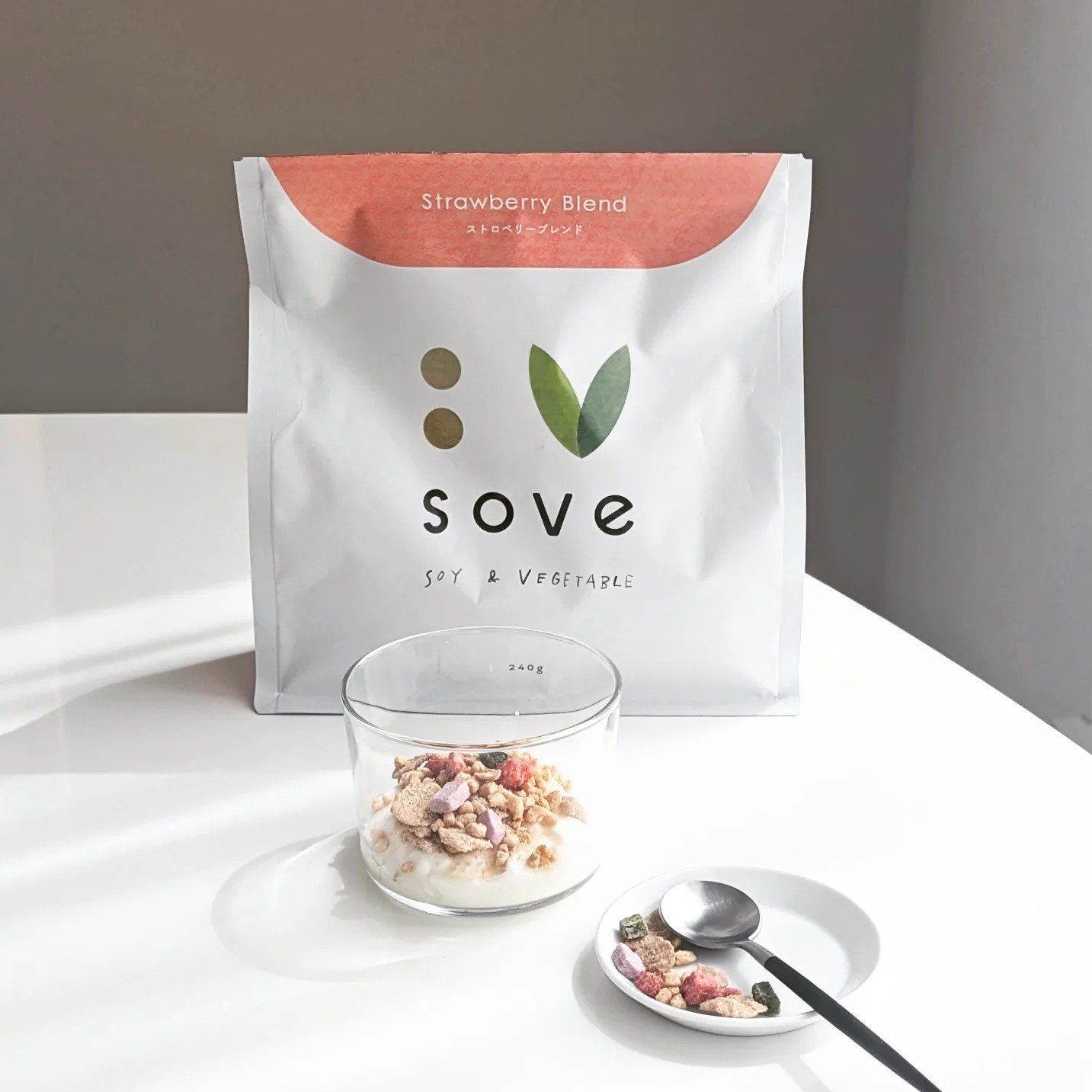 @sove.jp様よりプレゼント企画で頂きました。カラダのための、大豆と野菜のシリアル。"SOVE"ストロベリーブレンド1食(40g)あたり、たんぱく質11.0g・食物繊維3.7〜6.6gと、栄養バランスに優れたシリアル。 2種類の大豆フレー...