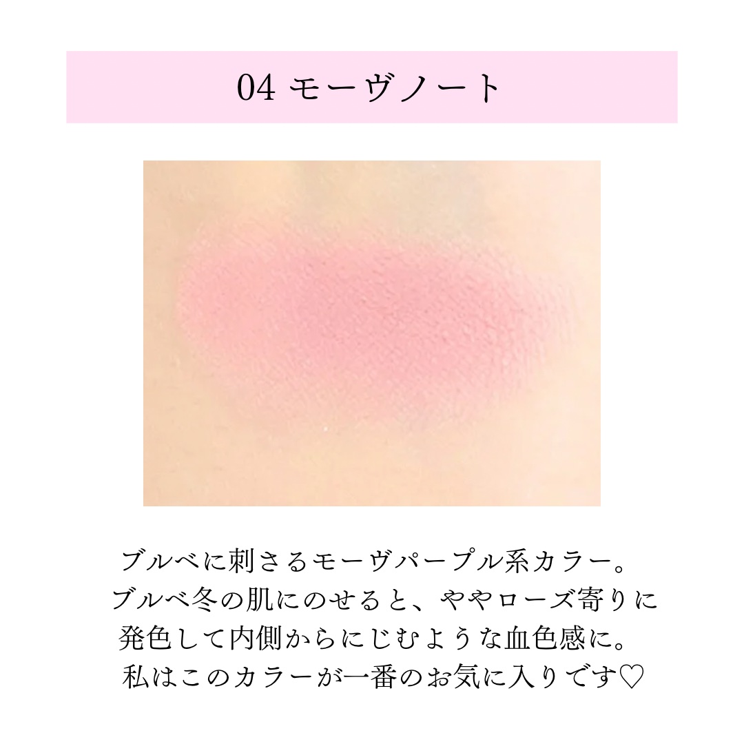 | チークランキング第3位 | 肌に溶け込むようにしっとりとしたパウダーは ムラになりにくく、クリアな発色。繊細なパールのツヤが上品にきらめくよ。 | 詳細を見る | |
