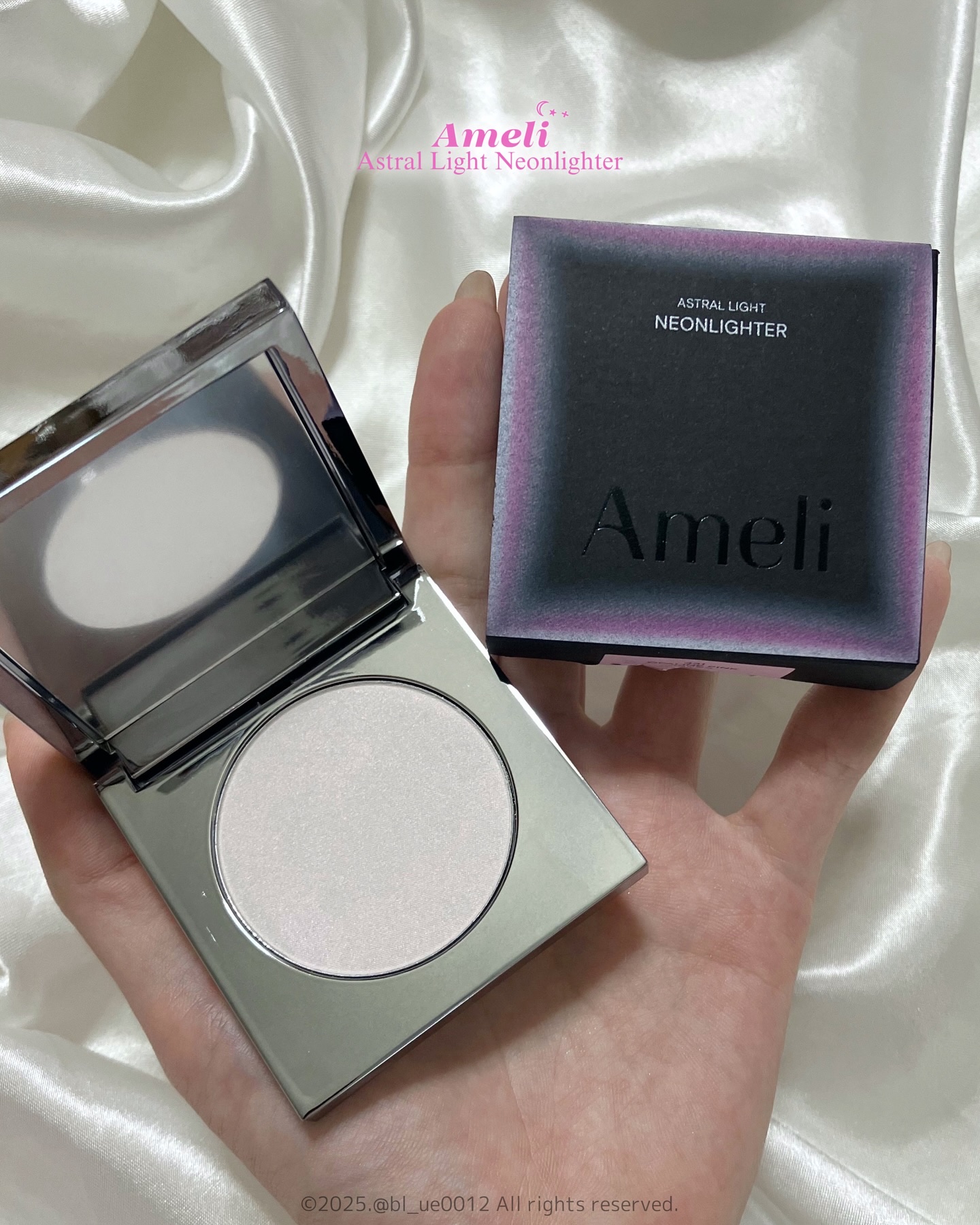 激可愛いピンクビームハイライト💗 Ameli Astral Light NEONLIGHTER ▪︎ OPALINE PINK 各¥4,950 (qoo10購入価格) 目頭、眉下、頬、唇の上、涙袋、少しずつ顔面に散らしたら統一感も出てオススメです💌 もう1つのピーチカラーも絶妙な偏光ビームが可愛いので頬などに塗るのおすすめします🥺🥺