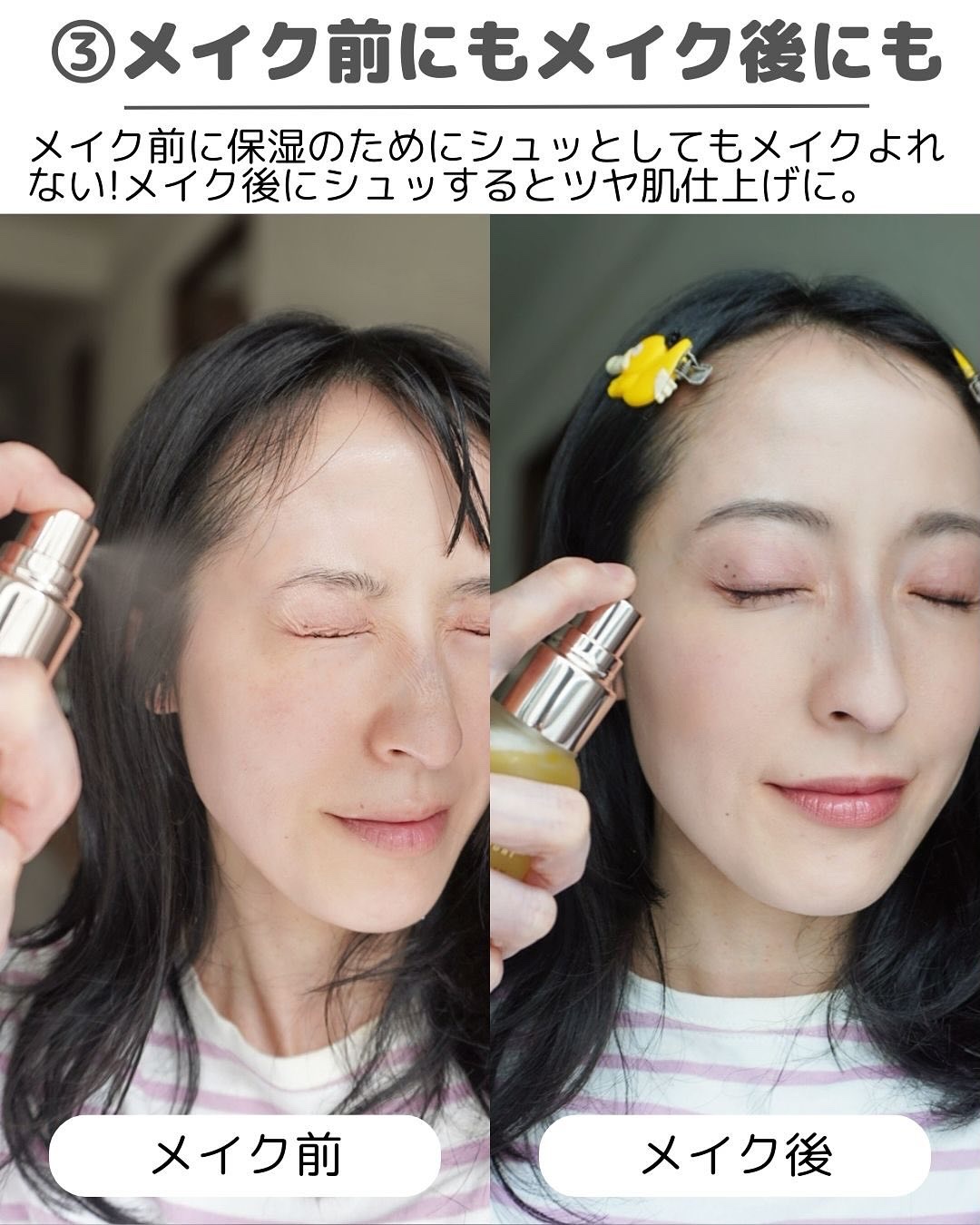 | メイクをした上にかけるミストです!粒子が細かいミストなので心地よく使えます。 | 詳細を見る | ||