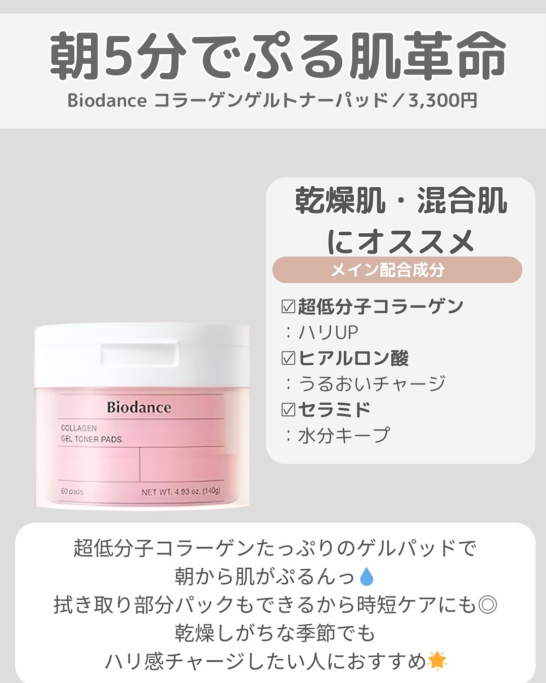 | トナーパッドランキング第43位 | エッセンスがたっぷりと含んでいて、柔らかいけど、厚みもある大きめのパッドが私には拭き取りやすいです👍 | 詳細を見る |