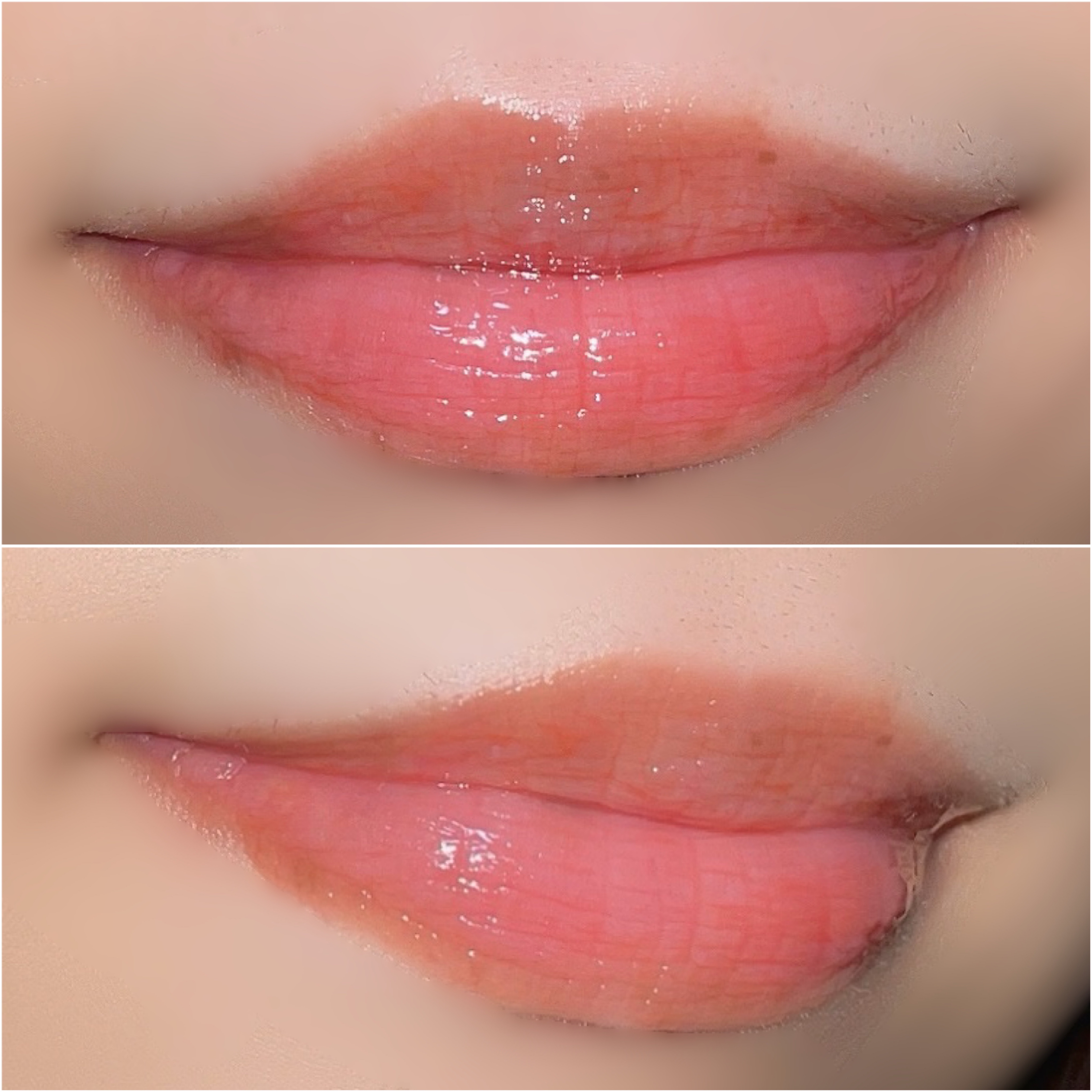 これ、すごくつやつやで水滴のように軽やかに伸びてくれます。 ベースオイルとカラーパウダーの配合バランスを追求した結果、この均一に広がる薄膜とフィット感が実現出来たのだとか💡´- 唇へのフィット感がすごく好きです、これ。 ヒアルロン酸、ローズヒップオイル配合で唇をしっかりと守ってくれるようですね💡´- 私の選んだウォームバタースコッチは、少し大人っぽいくすみのあるコーラルベージュ❤︎.* ベージュのリップってあんまり持っていないというか、挑戦しにくくて……でもこれ本当に可愛い色味🥺✨ 他の色味も可愛いものばかりですし、きっと似合うものがあると思います☺️