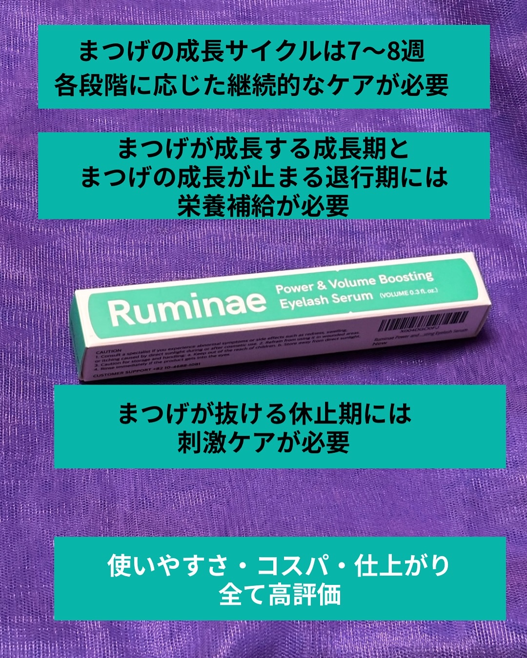 #PRRuminaeさんより頂きました✨RuminaePower&VolumeBoostingEyelashSerum密度が高く丈夫で健康的なまつ毛に💗高濃度処方ヒアルロン酸、ビオチン、ペプチド、パンテノール、黒大豆抽出物、センテラアジア抽出...