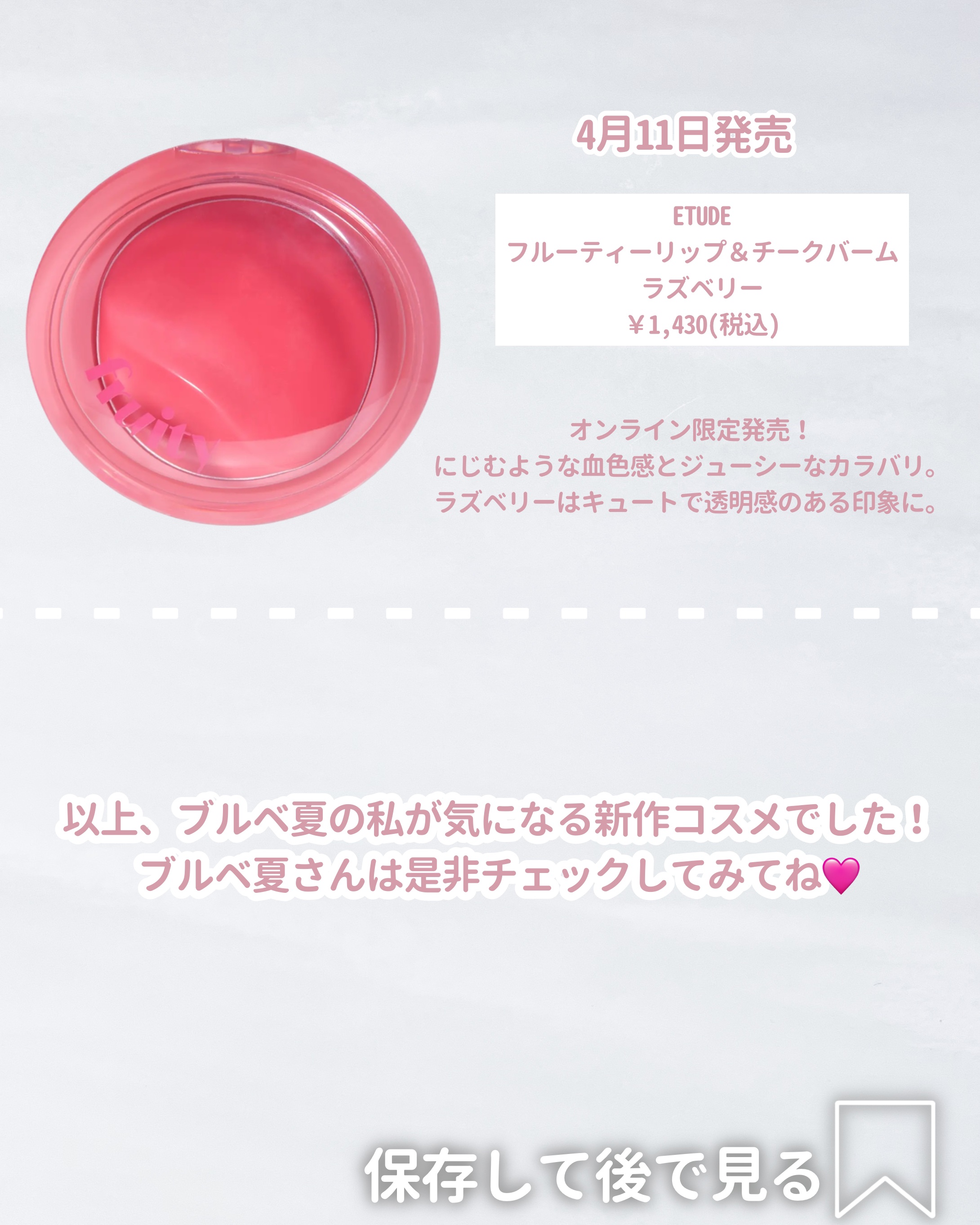 ETUDE フルーティーリップ&チークバーム | 1,430円 |