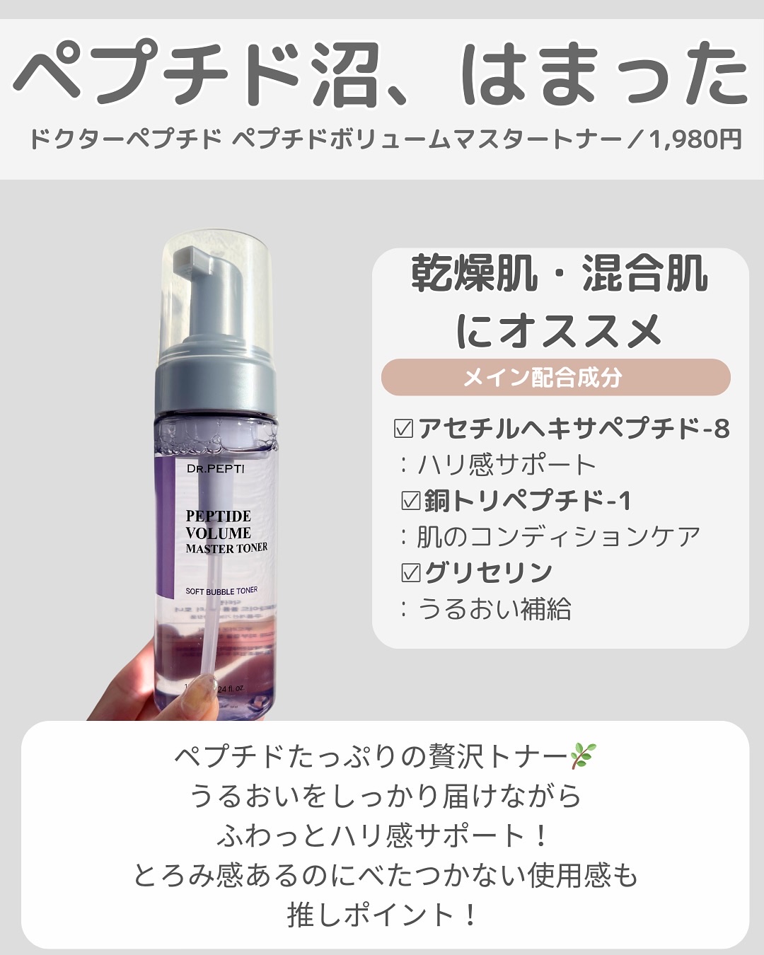これ、ほんとにヤバい…✨最近のスキンケアで、一番感動したのがこのDR.PEPTI(ドクターペプチ)のPEPTIDEVOLUMEシリーズ!✔PEPTIDEVOLUMEWATERGLOWSERUM(写真左)まさに”飲む美容液”レベルの保湿力。塗っ...