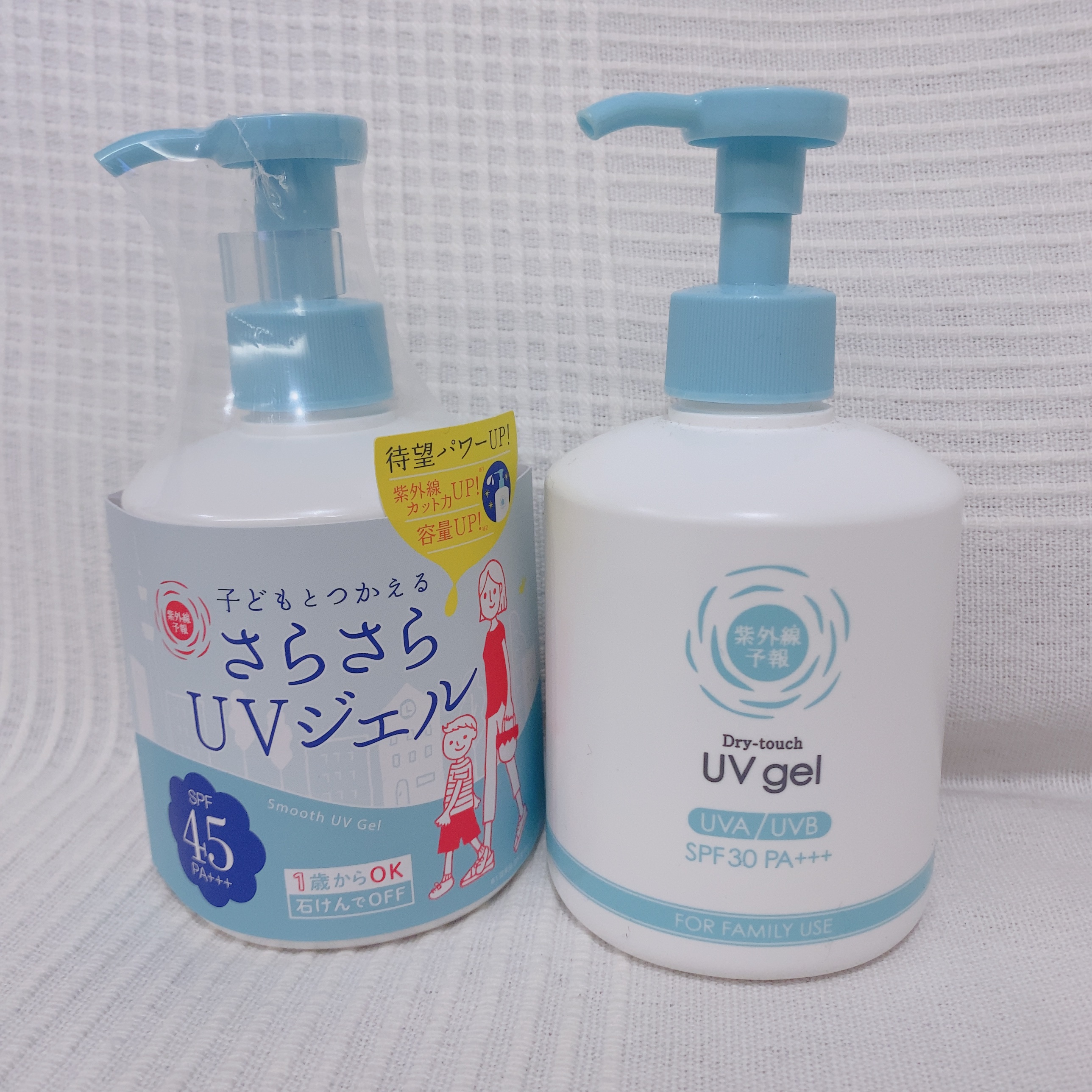 「さらさらUVジェル」が待望のリニューアル⚐ SPF値と容量がパワーアップしたんだそう! みずみずしいジェル状で伸び広げるとサッとなじんでサラサラな仕上がり♡ 白浮きのない軽やかなつけ心地でムラにならずスキンケアのように使えるのがお気に入りˊ˗ 石けんで落とせるので、家族みんなで使う日やけ止めにピッタリ◎