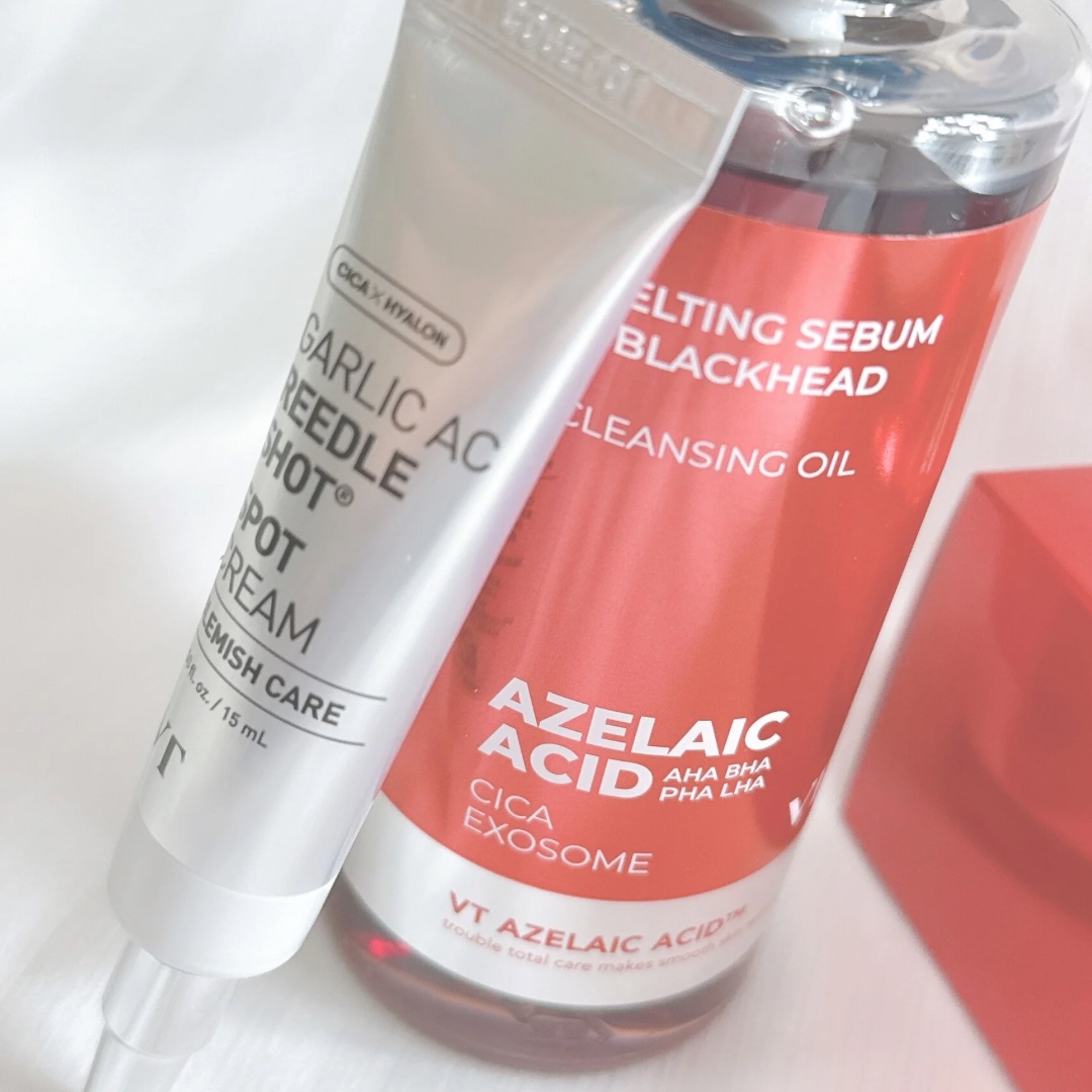 #PRVT(@vtcosmetics_jp)さんからいただきました🎁ニキビケアなら、VTのアゼライン酸とガーリックがおすすめ🩷毎日のメイク残しや毛穴詰まり皮脂ケアとして#アゼライン酸クレンジングオイルを使って、それでもできちゃったニキビにはク...