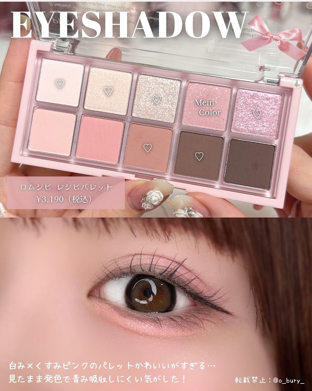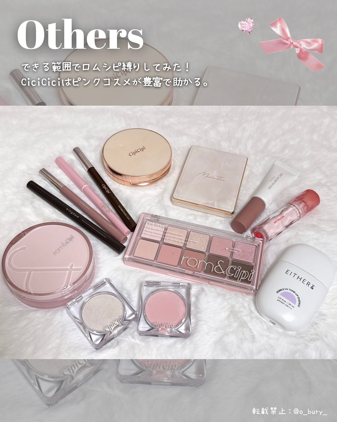 \このコラボはたまらん/4月25日から発売されてる、ロムシピ!rom&nd×CipiCipiだよ〜!!上段と下段でそれぞれがPickしたカラーが入ってるアイシャドウは、気分で使い分けられる10色ですごい可愛いピンクメイクができちゃう。いや...