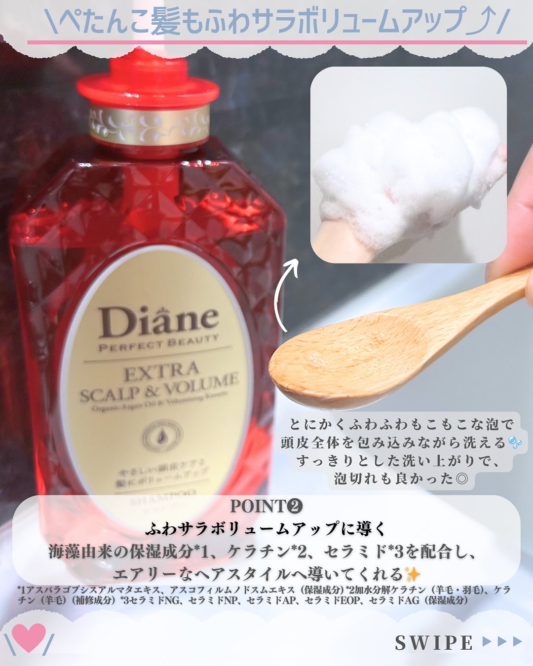 ベタつきや抜け毛などのお悩みに…赤のDiane❤️✼••┈┈••✼••┈┈••✼••┈┈••✼••┈┈••✼ダイアン(@dianeperfectbeauty)✔︎ダイアンエクストラスカルプ&ボリュームシャンプー&トリートメントセット(各450...