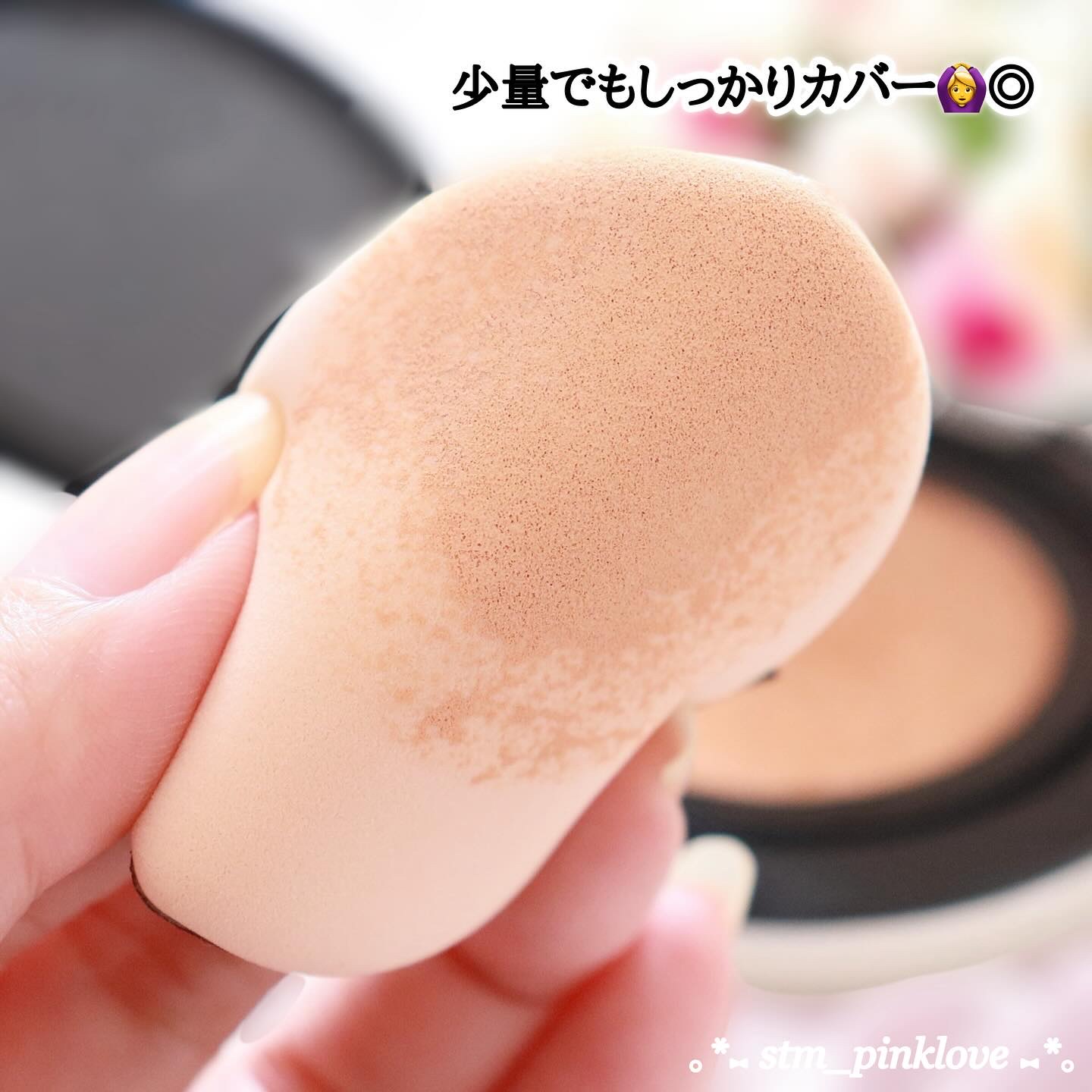 テクスチャーは滑らかでしっとりしていますがお肌に塗るとしっかり密着してくれてマット肌になります🙊💕 カバー力もそこそこあり気になる部分には2度塗りしたら少し厚塗り感は出ますがシミなどは隠してくれます🥰🌸 崩れにくいリキッドファンデーションとサイトに書いてありますが多少はマスクに色移りしちゃいました🥲💦