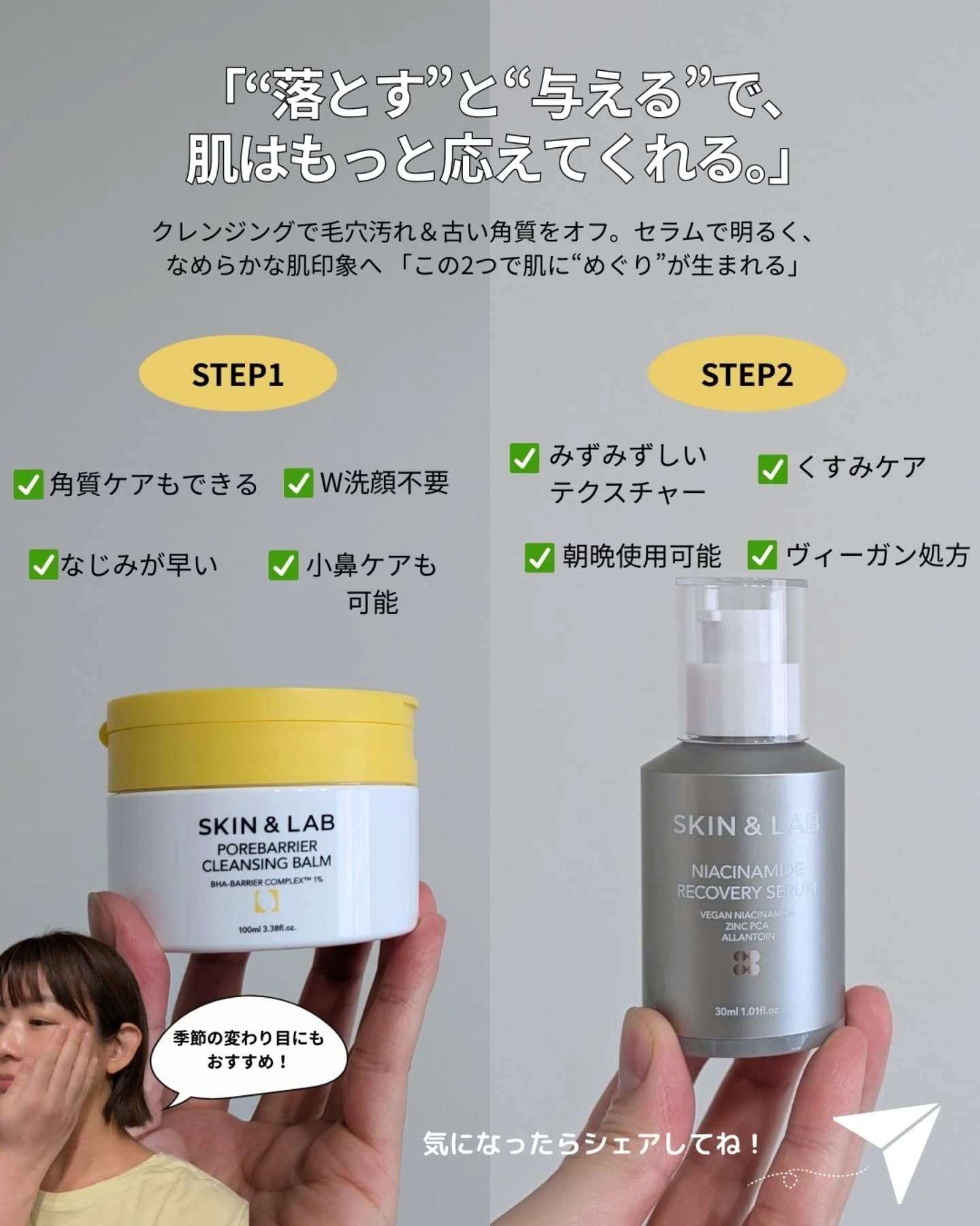 SKIN&LAB…🌿 ・ポアバリアクレンジングバーム 100ml/¥3380(参考価格) ・ナイアシンアミドリカバリーセラム 30ml/¥3600(参考価格) @skinnlab_japan様より ...