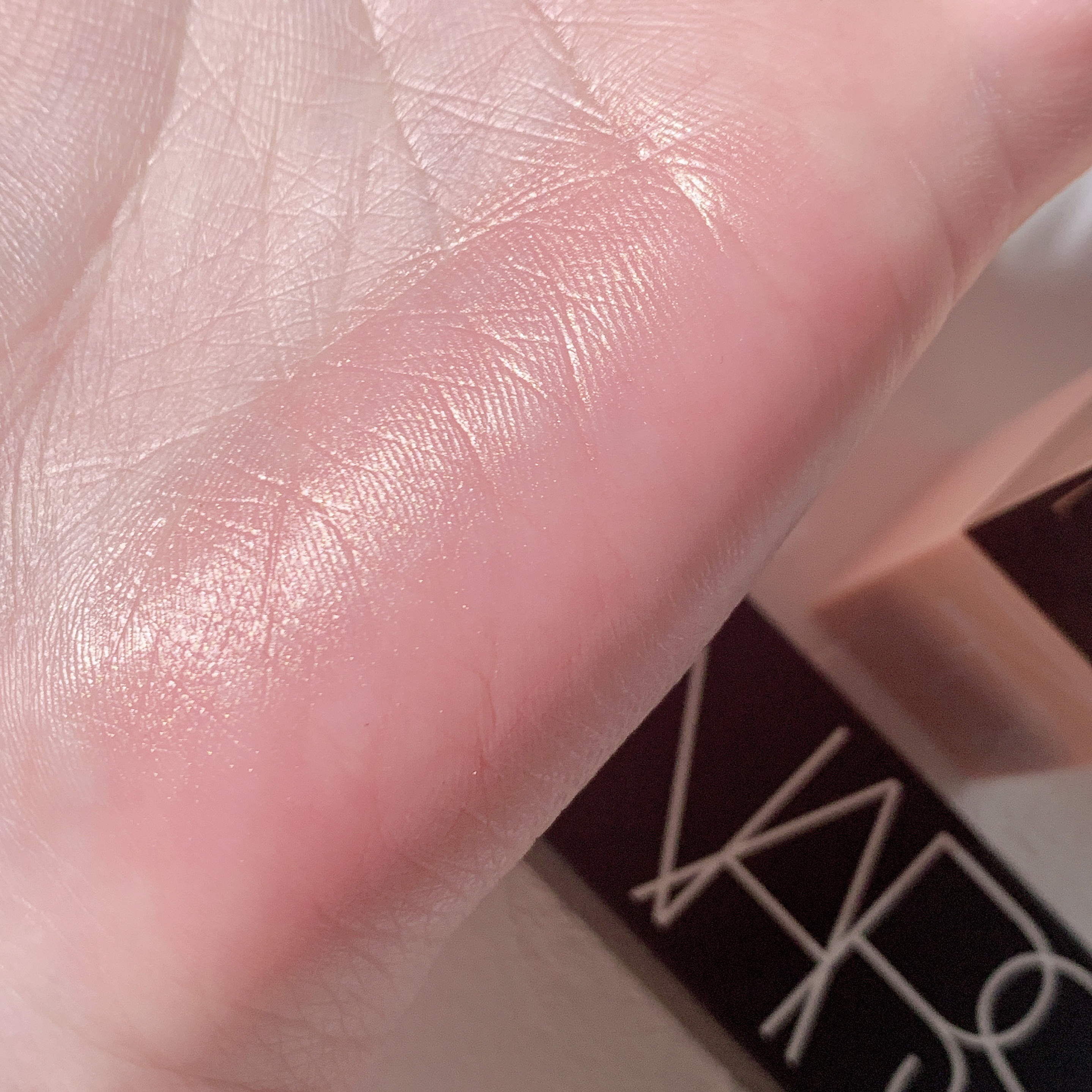 NARSの02799(オーガズム)って色が 名前がえっちだけど凄く好きで、パウダーチークもリップもアイシャドウも! オーガズム揃えたくらい愛用カラー! ピンクにゴールドのラメが入っていて可愛らしいのですが多幸感あるほっぺになれる仕上がり。 ほんとに少量でOKです! 私のは現品よりやや小さいサイズなのですが一年経っても全然使えてます