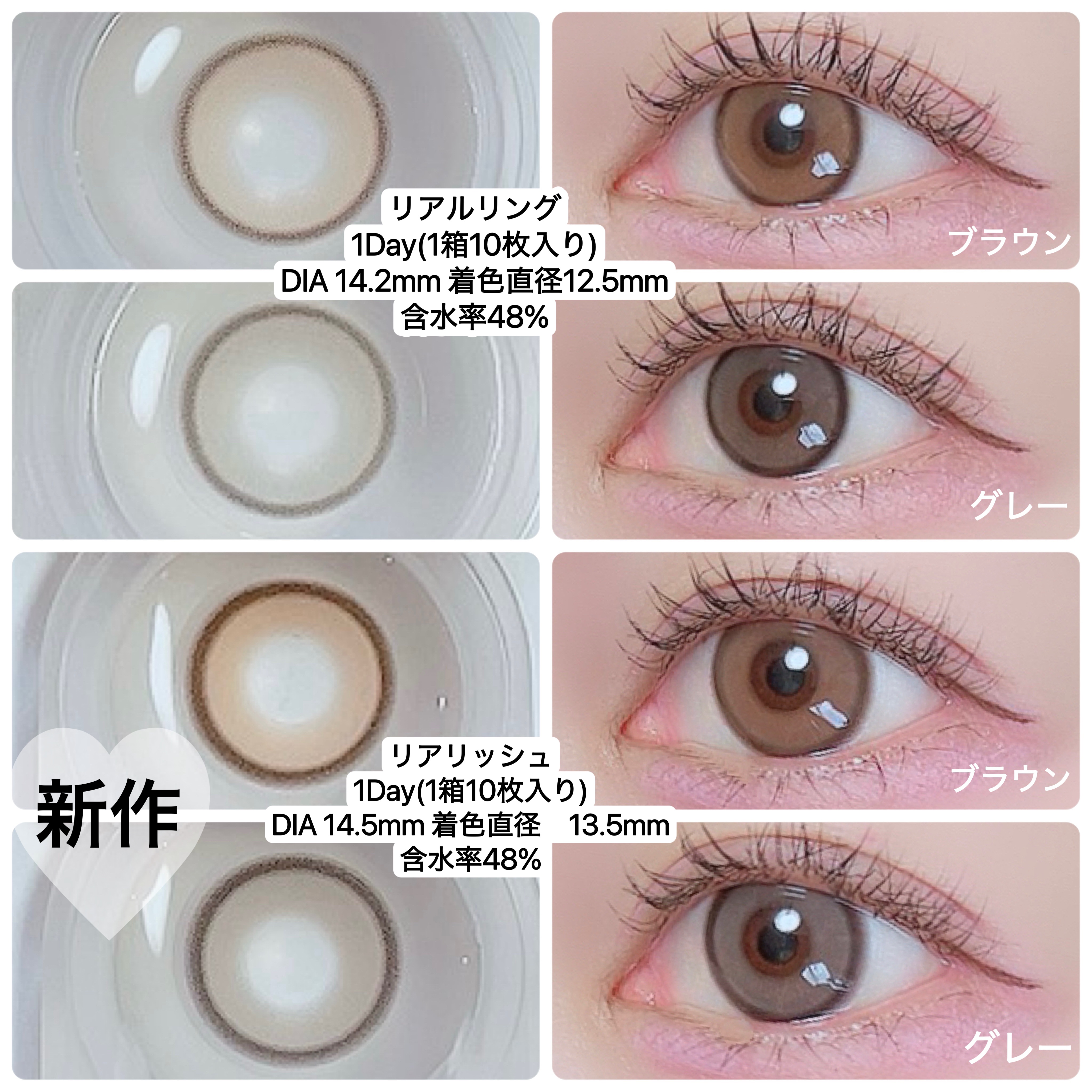 [OLENS新作!デカ目カラコン比較]new🤍☑︎Realish(Gray/Brown)1DAY|G.DIA13.5|WATER48%太フチとトーンアップカラーでラブリーなデカ目を演出♩☑︎RealRing(Gray/Brown)1DAY|G...