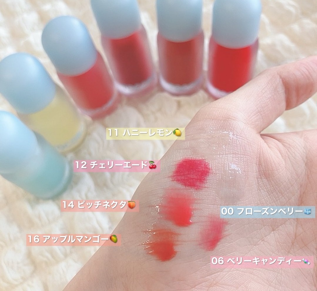 パウダールームさまを通してトコボ様より頂きました☺︎ありがとうございますジューシーベリープランピングリップオイル4色ランダムモニターです00フローズンベリー05ロージーカール14ピーチネクター16アップルマンゴー全てフルーツの名前でかわいい🩷...