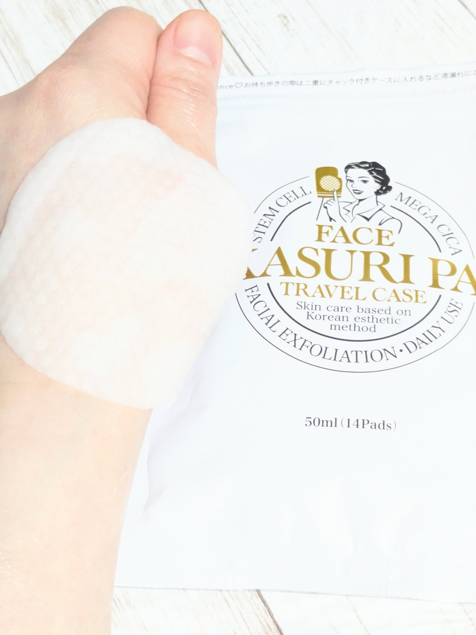 - ①独自処方の2面パッドで角質+保湿へダブルアプローチ まずガーゼ面(ザラザラ面)で不要な角質や皮脂、毛穴汚れをスッキリ落とします。このガーゼ素材は実は優しく拭き取るだけで不要な角質や汚れを落とすだけでなく、ターンオーバーに着目して開発されています。次にエンボス面で、クリアになった素肌を優しく保湿。角質層までたっぷりの美容成分を届けてしっとり潤いを与えます。忙しいママさんも、スボラ女子さんも、男性も、これ1枚で簡単30秒ケア!簡単だからこそ毎日続けられる!継続こそが素肌美人への近道! ②主成分が水ではなくCICA 多くの化粧品の主成分は8〜9割が水であるのに対し、AKASURI PADの主成分は美容成分で肌管理の『CICA(シカ)』 ③イデベノン配合 エイジングケアの代表格『ヒト幹細胞』や『ナイアシンアミド』に加え、次世代成分『イデベノン』配合。なんとビタミンCの4倍、コエンザイムQ10の10倍も若さと健康をケアする成分であるため、美容大国韓国では大注目成分である。 ④簡単30秒ケアで高タイパ 1枚たったの30秒ケアで、洗顔・化粧水・美容液まで完結できる『美容液パッド』はコスパもタイパも最高!
