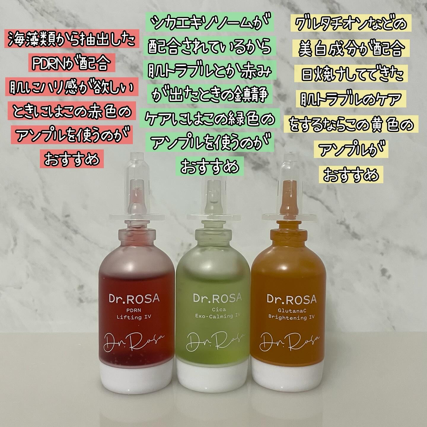 その日のなりたい肌、コンディションに合わせて✨レイヤリングするアンプル🥰Dr.ROSADr.ROSAIVアンプル3種セットQoo10公式店価格5327円推しポイント⭐︎•ハリケア、美白、シカその日の肌コンディションで組み合わせを変えて使えるの...