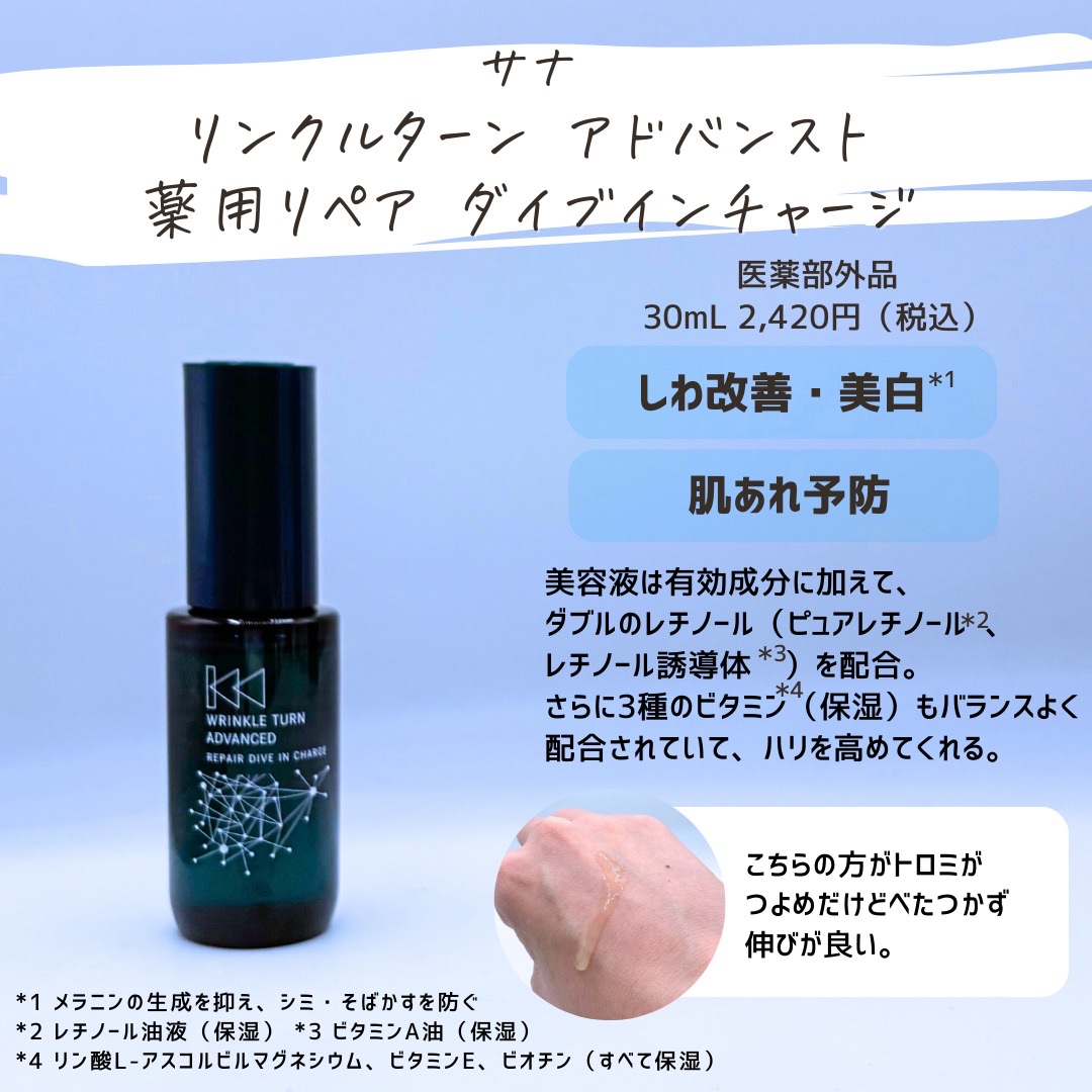 1品で美白*1、しわ改善、肌あれ予防のトリプルケア! W有効成分のナイアシンアミド、グリチルリチン酸ジカリウムが、様々な肌悩みを抱えた大人の肌にアプローチ! とろみのあるテクスチャーで伸びが良く、お肌にすっとなじむ!もっちりとした使い心地⭐