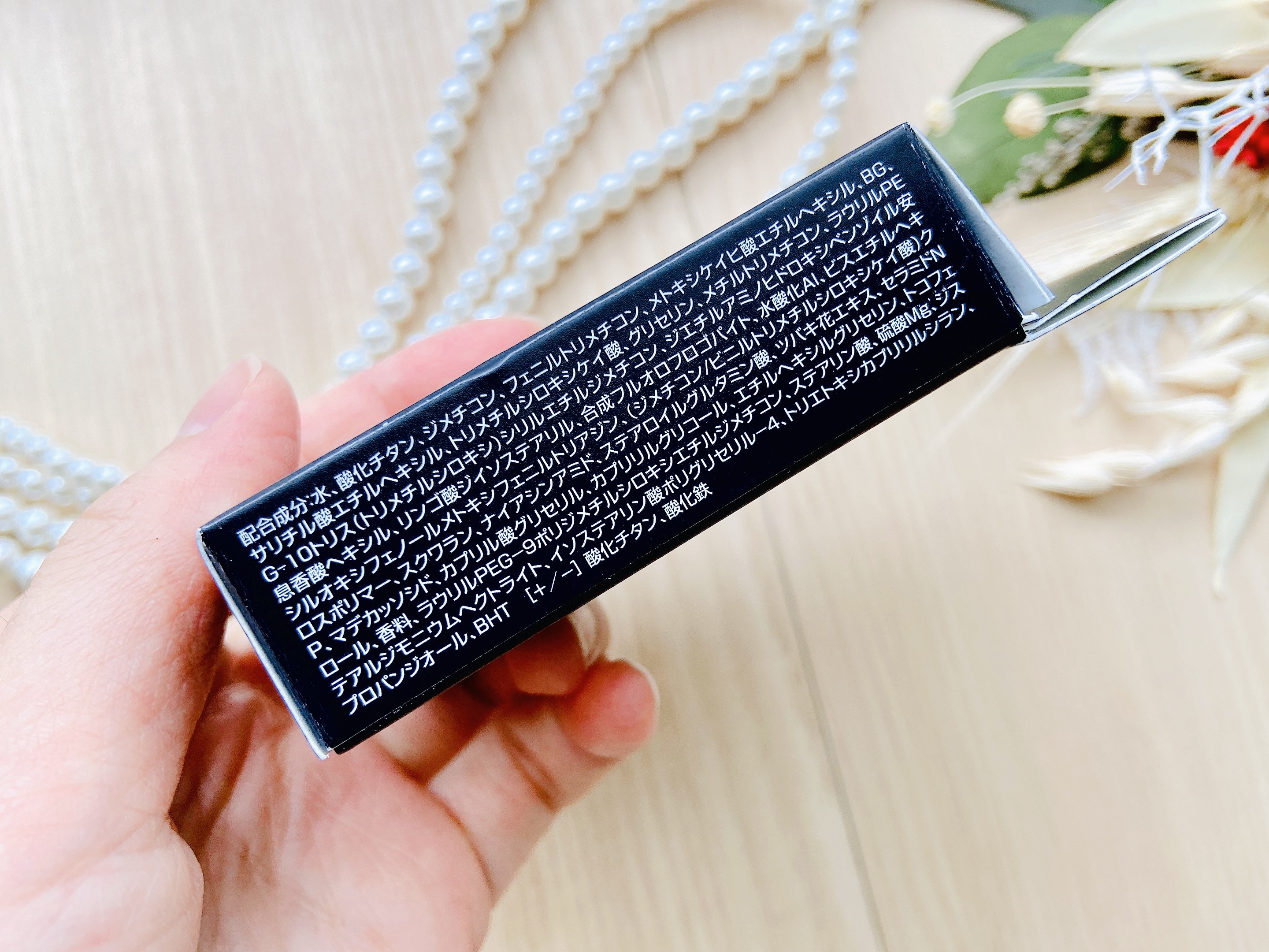 - <001 ポーセリン> 水、酸化チタン、ジメチコン、フェニルトリメチコン、メトキシケイヒ酸エチルヘキシル、BG、サリチル酸エチルヘキシル、トリメチルシロキシケイ酸、グリセリン、メチルトリメチコン、ラウリルPEG-10トリス(トリメチルシロキシ)シリルエチルジメチコン、ジエチルアミノヒドロキシベンゾイル安息香酸ヘキシル、リンゴ酸ジイソステアリル、合成フルオロフロゴパイト、水酸化Al、ビスエチルヘキシルオキシフェノールメトキシフェニルトリアジン、(ジメチコン/ビニルトリメチルシロキシケイ酸)クロスポリマー、スクワラン、ナイアシンアミド、ステアロイルグルタミン酸、ツバキ花エキス、セラミドNP、マデカッソシド、カプリル酸グリセリル、カプリリルグリコール、エチルヘキシルグリセリン、トコフェロール、香料、ラウリルPEG-9ポリジメチルシロキシエチルジメチコン、ステアリン酸、硫酸Mg、ジステアルジモニウムヘクトライト、イソステアリン酸ポリグリセリル-4、トリエトキシカプリリルシラン、プロパンジオール、BHT [+/-] 酸化チタン、酸化鉄 <002 バフ> 水、酸化チタン、ジメチコン、フェニルトリメチコン、メトキシケイヒ酸エチルヘキシル、BG、サリチル酸エチルヘキシル、トリメチルシロキシケイ酸、グリセリン、メチルトリメチコン、ラウリルPEG-10トリス(トリメチルシロキシ)シリルエチルジメチコン、ジエチルアミノヒドロキシベンゾイル安息香酸ヘキシル、リンゴ酸ジイソステアリル、水酸化Al、合成フルオロフロゴパイト、ビスエチルヘキシルオキシフェノールメトキシフェニルトリアジン、(ジメチコン/ビニルトリメチルシロキシケイ酸)クロスポリマー、スクワラン、ナイアシンアミド、ステアロイルグルタミン酸、ツバキ花エキス、セラミドNP、マデカッソシド、カプリル酸グリセリル、カプリリルグリコール、エチルヘキシルグリセリン、トコフェロール、香料、ラウリルPEG-9ポリジメチルシロキシエチルジメチコン、ステアリン酸、ジステアルジモニウムヘクトライト、硫酸Mg、イソステアリン酸ポリグリセリル-4、トリエトキシカプリリルシラン、プロパンジオール、BHT [+/-] 酸化チタン、酸化鉄 <003 ヌード> 水、酸化チタン、ジメチコン、フェニルトリメチコン、メトキシケイヒ酸エチルヘキシル、BG、サリチル酸エチルヘキシル、トリメチルシロキシケイ酸、グリセリン、メチルトリメチコン、ラウリルPEG-10トリス(トリメチルシロキシ)シリルエチルジメチコン、ジエチルアミノヒドロキシベンゾイル安息香酸ヘキシル、リンゴ酸ジイソステアリル、水酸化Al、ビスエチルヘキシルオキシフェノールメトキシフェニルトリアジン、合成フルオロフロゴパイト、(ジメチコン/ビニルトリメチルシロキシケイ酸)クロスポリマー、スクワラン、ナイアシンアミド、ステアロイルグルタミン酸、ツバキ花エキス、セラミドNP、マデカッソシド、カプリル酸グリセリル、カプリリルグリコール、エチルヘキシルグリセリン、トコフェロール、香料、ラウリルPEG-9ポリジメチルシロキシエチルジメチコン、ステアリン酸、ジステアルジモニウムヘクトライト、硫酸Mg、イソステアリン酸ポリグリセリル-4、プロパンジオール、トリエトキシカプリリルシラン、BHT [+/-] 酸化チタン、酸化鉄