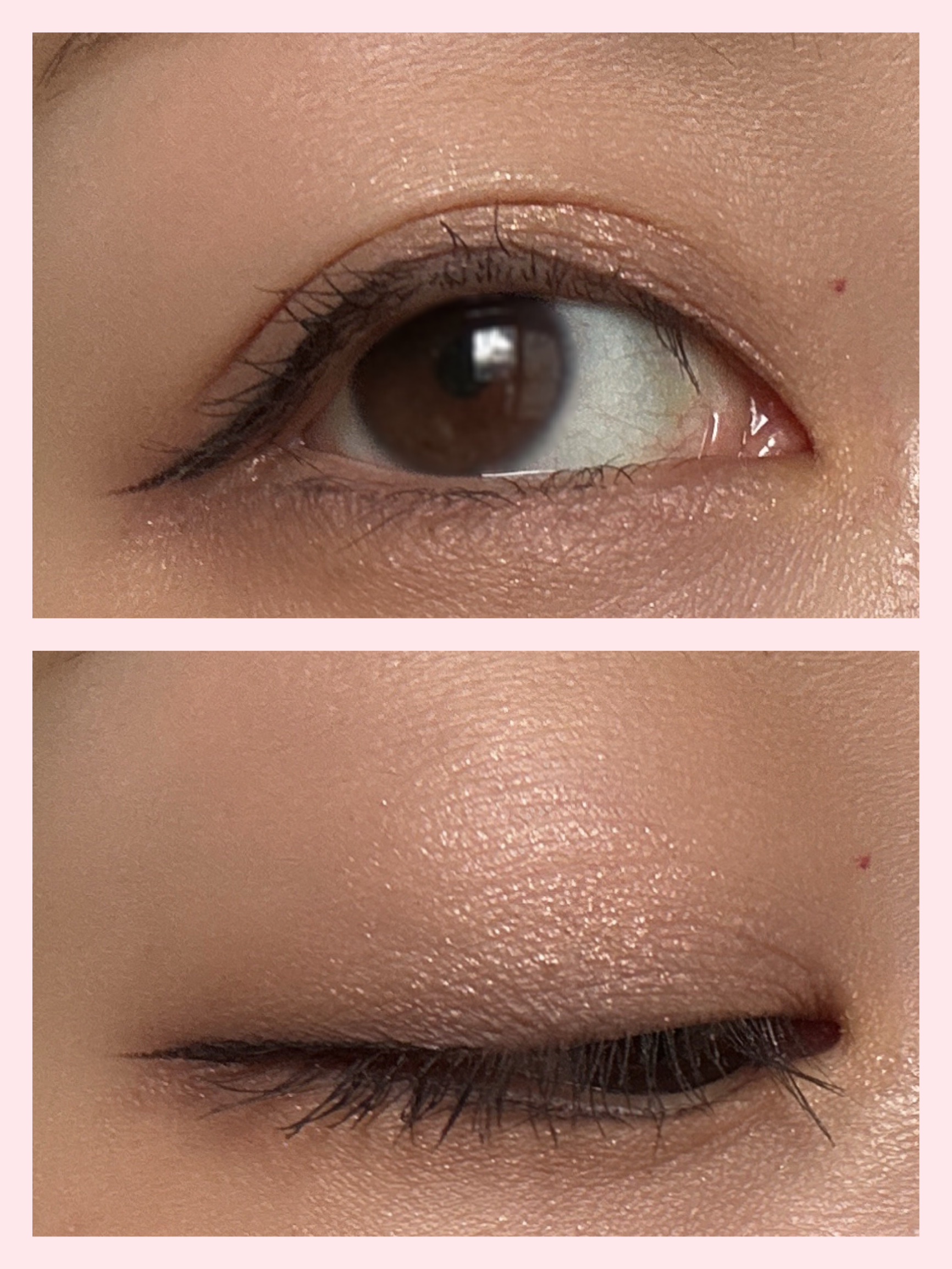 01のマンダリンゴールドはとても抜け感のある淡めの色✨ 私の目には少し物足りなくなっちゃうけど目がはっきりしている方はめちゃめちゃ可愛いと思う!! 03のモカブラウンは手に描いた時におおーーっ!となった絶妙な赤みブラウン。 パールタイプで写真じゃわかりづらいけどツヤっとしてるよ💓 この色が本当に本当に可愛くて🥺✨✨ラインひいて可愛いなぁ…と写真撮ったらマスカラ忘れてた😂 04のオリーブブラウン🫒これはラメタイプ。これは正にオリーブ!って色✨目に描くと深みの中にほんの少し抜け感?が出るようなオシャレ色✨