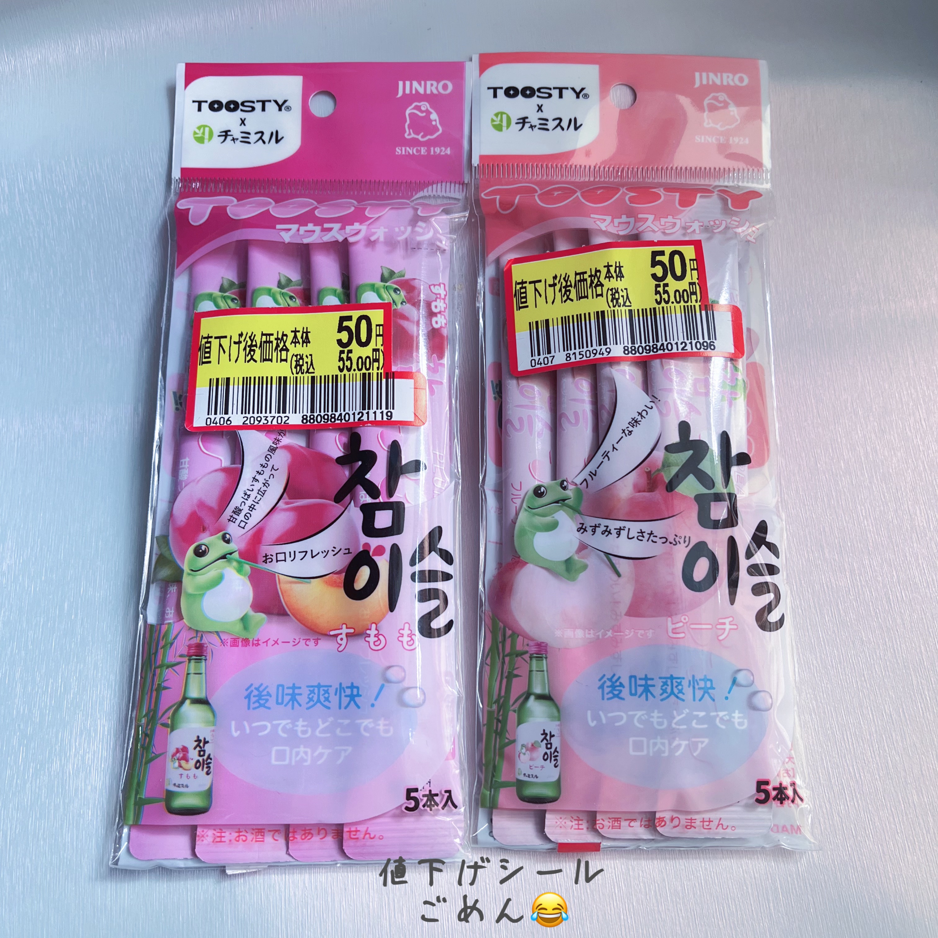 TOOSTYTOOSTYXチャミスル マウスウォッシュ すもも前にマスカット味と一緒に買ったやーつ🍑すもも味はまず見た目が可愛い😍ピンクって無条件に可愛いな?個包装だから持ち運びに便利だし飲みそうになるくらい美味しい😀#TOOSTYXチャミス...