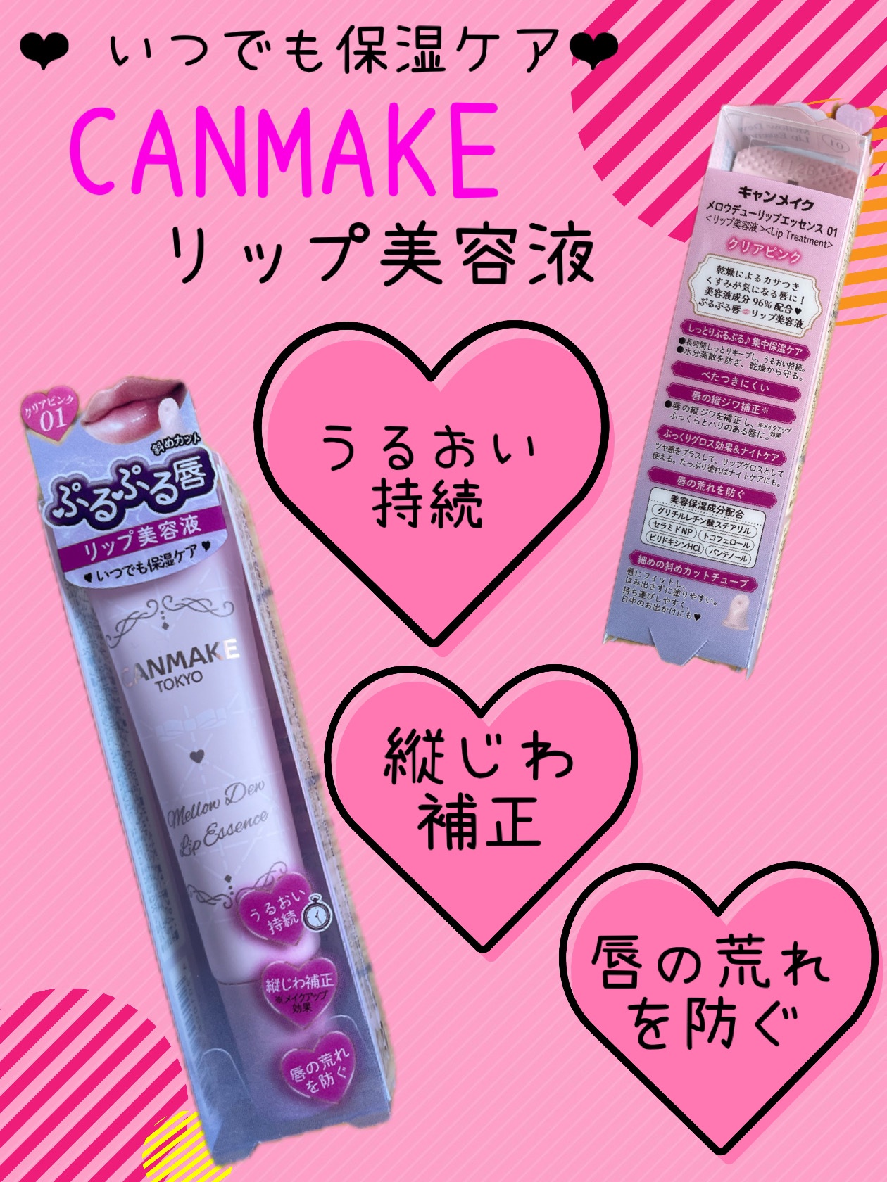 - 2025年7月以降順次定番化! いつでも保湿ケア♡ぷるぷる唇 リップ美容液! メロウデューリップマスクから登場した、いつでも保湿ケアができるチューブタイプのリップ美容液です。 乾燥によるカサつきくすみが気になる唇に!美容液成分96%配合。 【しっとりぷるぷる♪集中保湿ケア】 ・長時間しっとりキープし、うるおい持続。 ・水分蒸散を防ぎ、乾燥から守る。 【べたつきにくい】 【唇の縦ジワ補正※】 ・唇の縦ジワを補正し、ふっくらとハリのある唇に。 ※メイクアップ効果 【ぷっくりグロス効果&ナイトケア】 ツヤ感をプラスして、リップグロスとして使える♪ たっぷり塗ればナイトケアにも! 【唇の荒れを防ぐ】 ★美容保湿成分配合★ グリチルレチン酸ステアリル、セラミドNP、トコフェロール、ピリドキシンHCl、パンテノール 【細めの斜めカットチューブ】 唇にフィットし、はみ出さずに塗りやすい。持ち運びしやすく、日中のお出かけにも♡