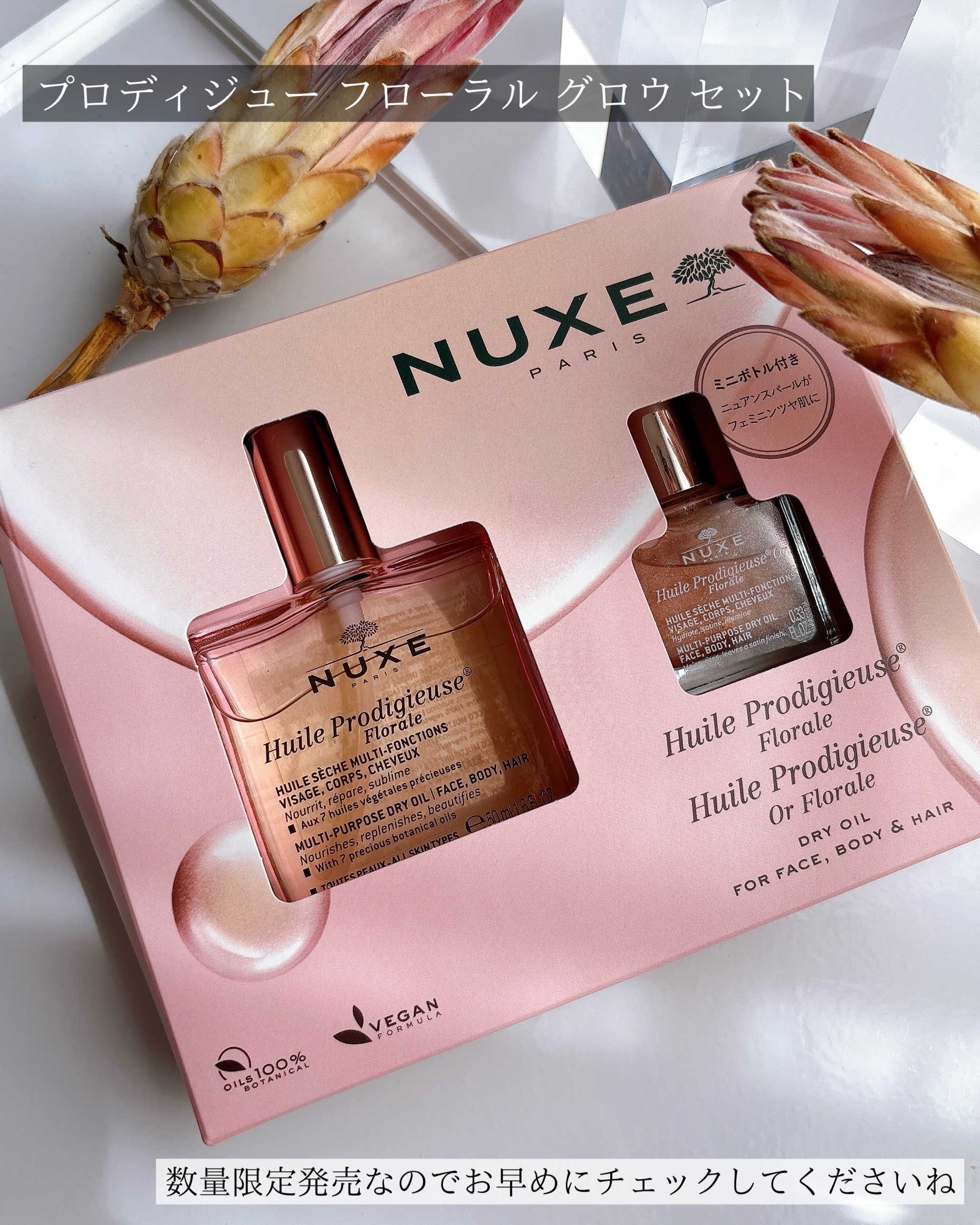 NUXE大人気のプロディジューラインより春コフレが数量限定で発売💗プロディジューフローラルオイル50mLプロディジューフローラルゴールドオイル10mL2つがセットになった限定品✨新生活やギフトにもぴったり!女性らしく上品な香りがとても良かった...