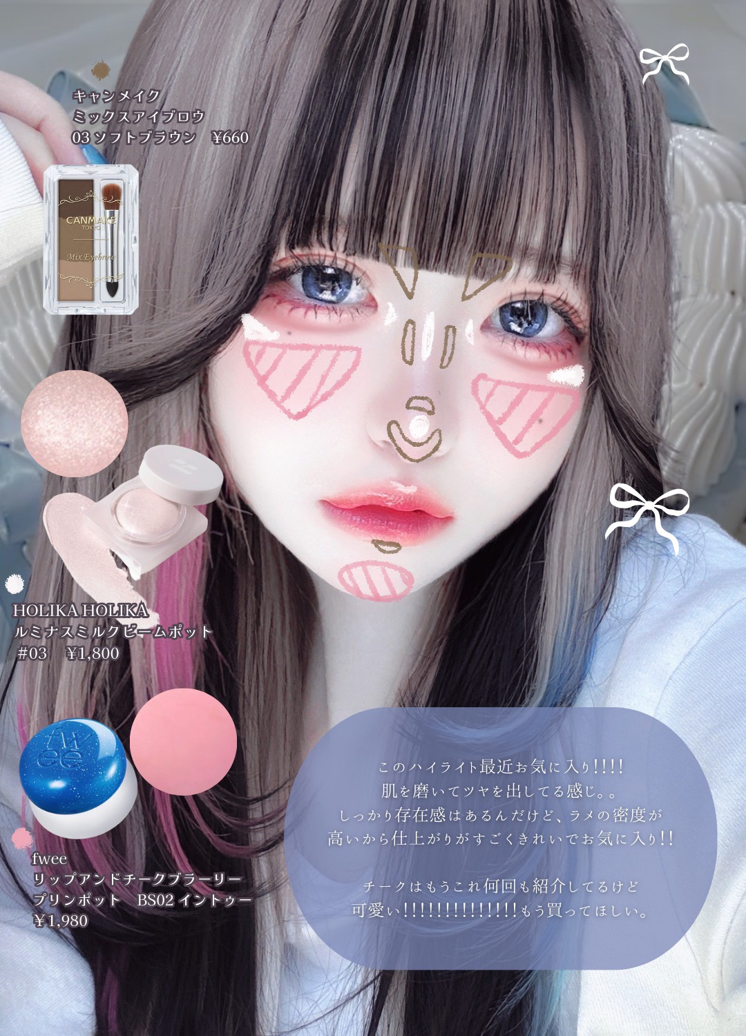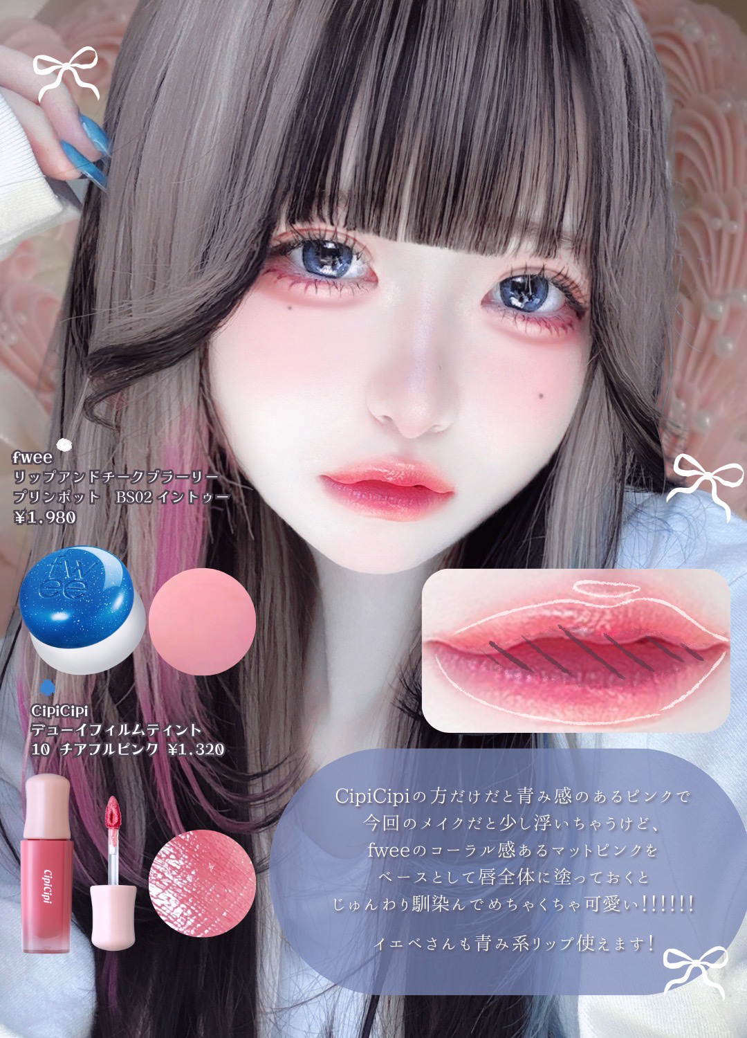 可愛いいぃぃ!‼︎可愛いすぎます💙🩷私はイエベ春だけどりぃーさんのこのメイクを見て透明感がある女子になります♡