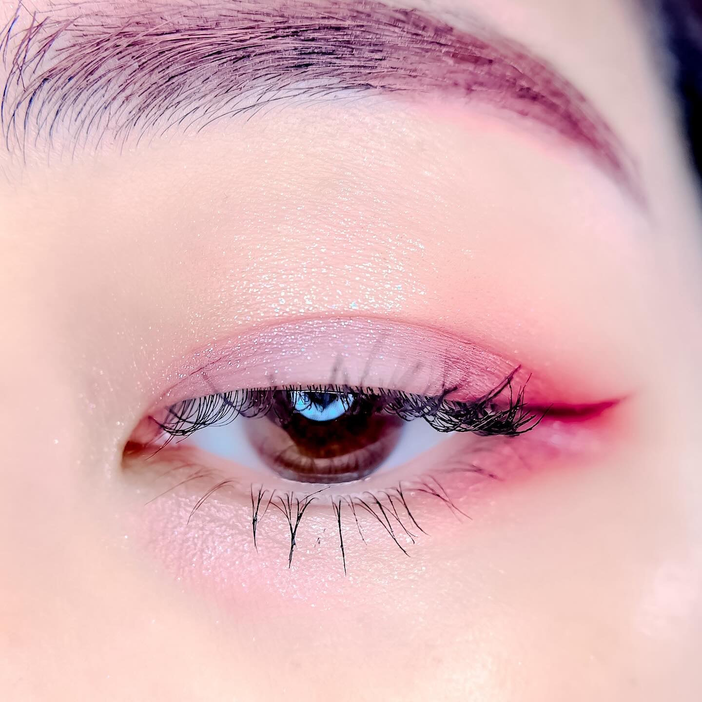 ピンクにグレージュも良いですね👌💗 今日は可愛らしい感じにしてみました💕 上下瞼黒目〜目頭側にラメを塗ってキラキラさせております🤩 目尻はマットのピンクを濃いめに重ねて💗 グレージュのアイライナーと相性◎