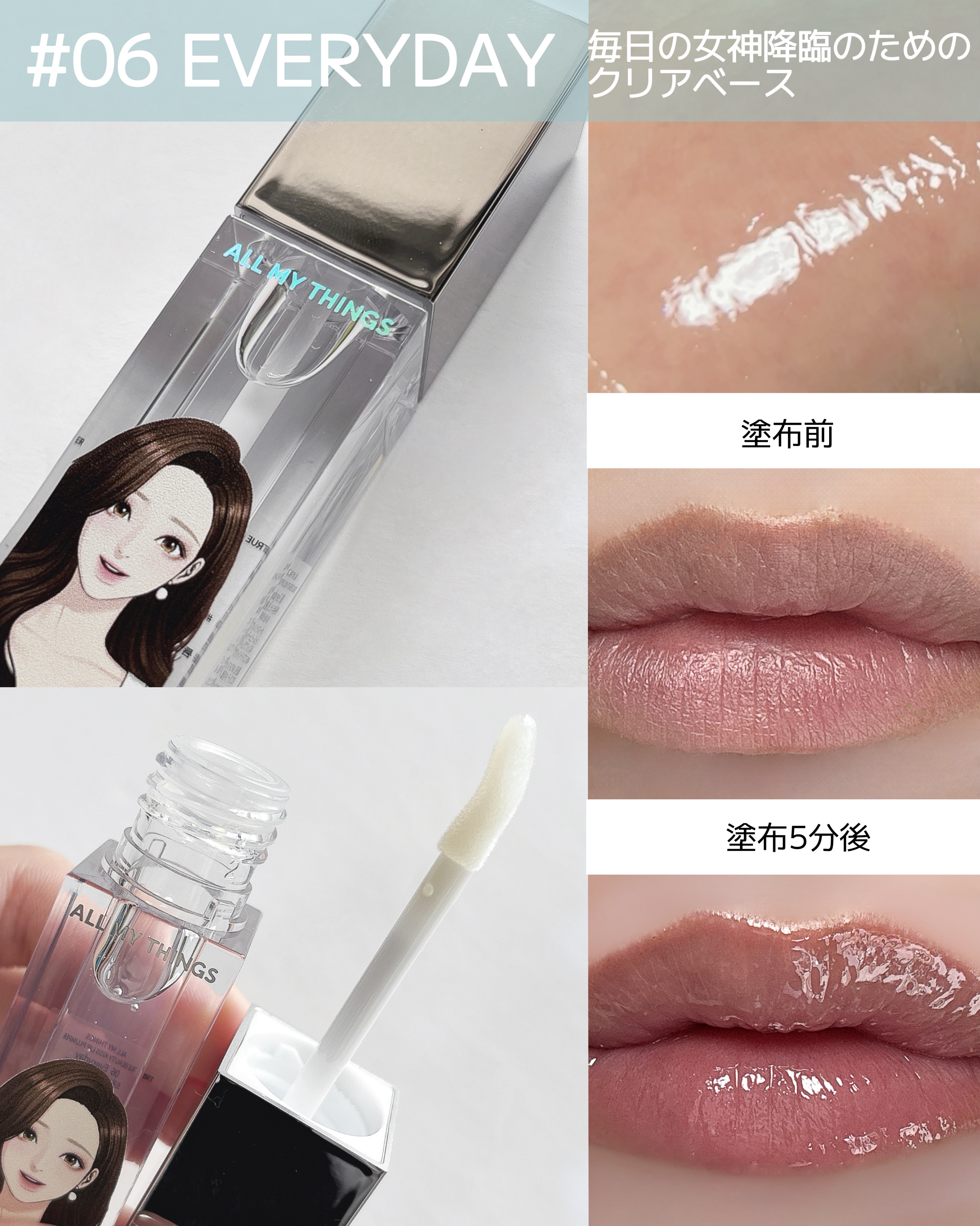 ALLMYTHINGSトゥルービューティーキスリッププランパー女神降臨のパッケージが可愛いプランパーしっとりとしたプランピング効果でまるで漫画みたいなぷっくりリップに🪄人気の既存6色に新色6色が加わった全12色展開⏬他のリップと組み合わせても...