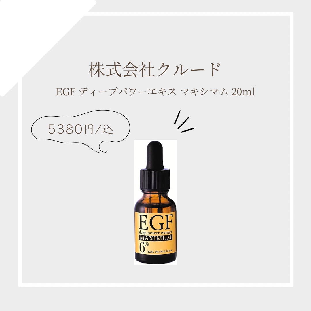 ノーベル医学生理学賞受賞者の研究によって発見された成分『EGF』をメーカー推奨濃度の3倍、6マイクログラムも配合した高濃度タイプの原液美容液だよ✨EGFディープパワーエキスマキシマム20ml5,380(税込)合成着色料、界面活性剤、鉱物油、防...