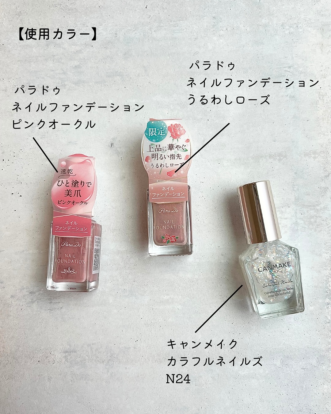 透明感抜群で時間が経っても ツヤツヤしてみえて最高🥰 シアー感のある桃ネイル♡ 不器用な方でも簡単にできるので 試してみてくださーい😊🙌 【使用カラー】 ロムアンドムードペブル #02 ソンプチューネイルポリッシュ ST-NP-68