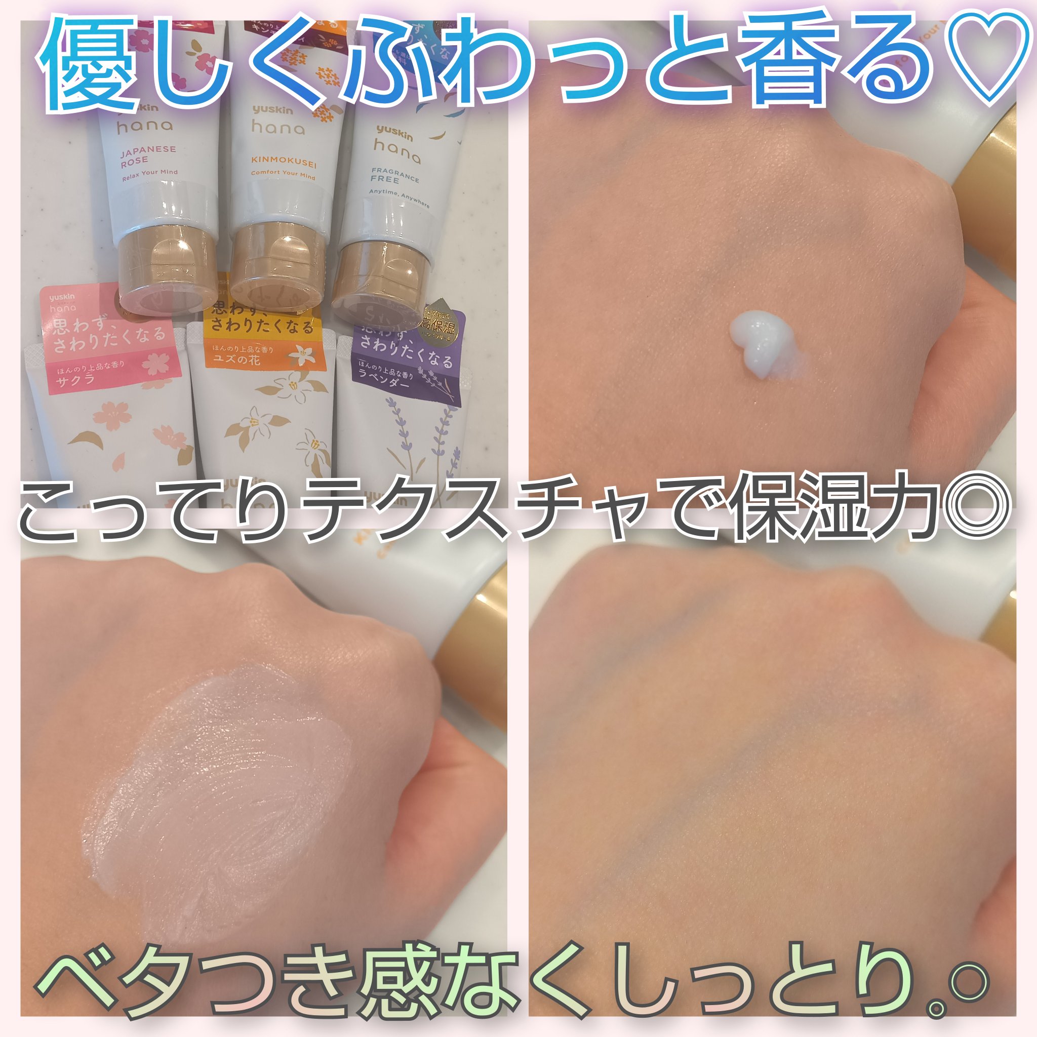 ユースキンhanaシリーズのハンドクリームは大好きで以前も購入したことがあるのですが、ジャパニーズローズの香りは初🌸 強すぎずほんのり香るお花の香りに癒されます☺️ するんとするまで手に馴染ませるとベタベタせずしっとりさらっとするので気に入っています🙌🏻🎶