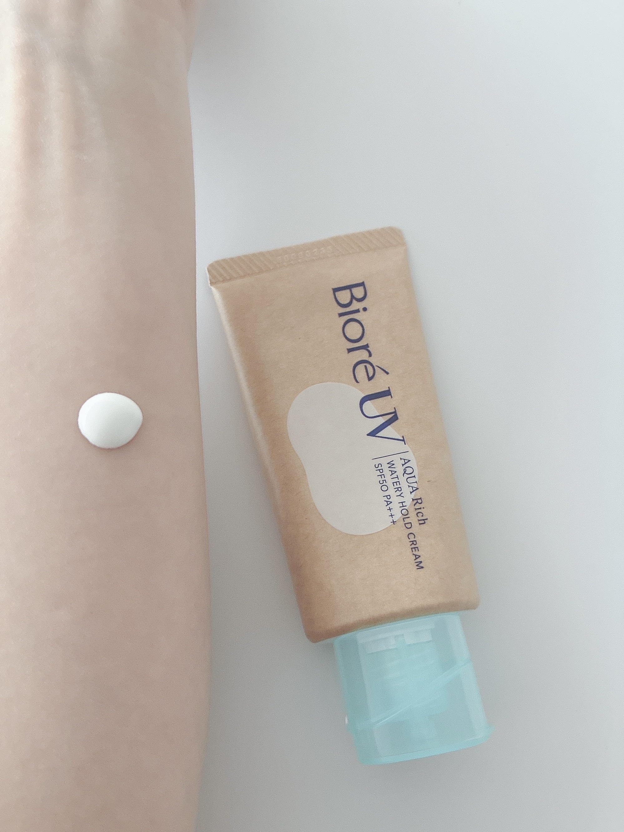 ビオレUVアクアリッチウォータリーホールドクリームみずみずしい使い心地の日焼け止め。ノンケミカル処方(紫外線吸収剤フリー)、アルコールフリー、パラベンフリー、着色料フリーで、せっけんで落とせます🫧優しい日焼け止めを探してる方におすすめ✨トーン...