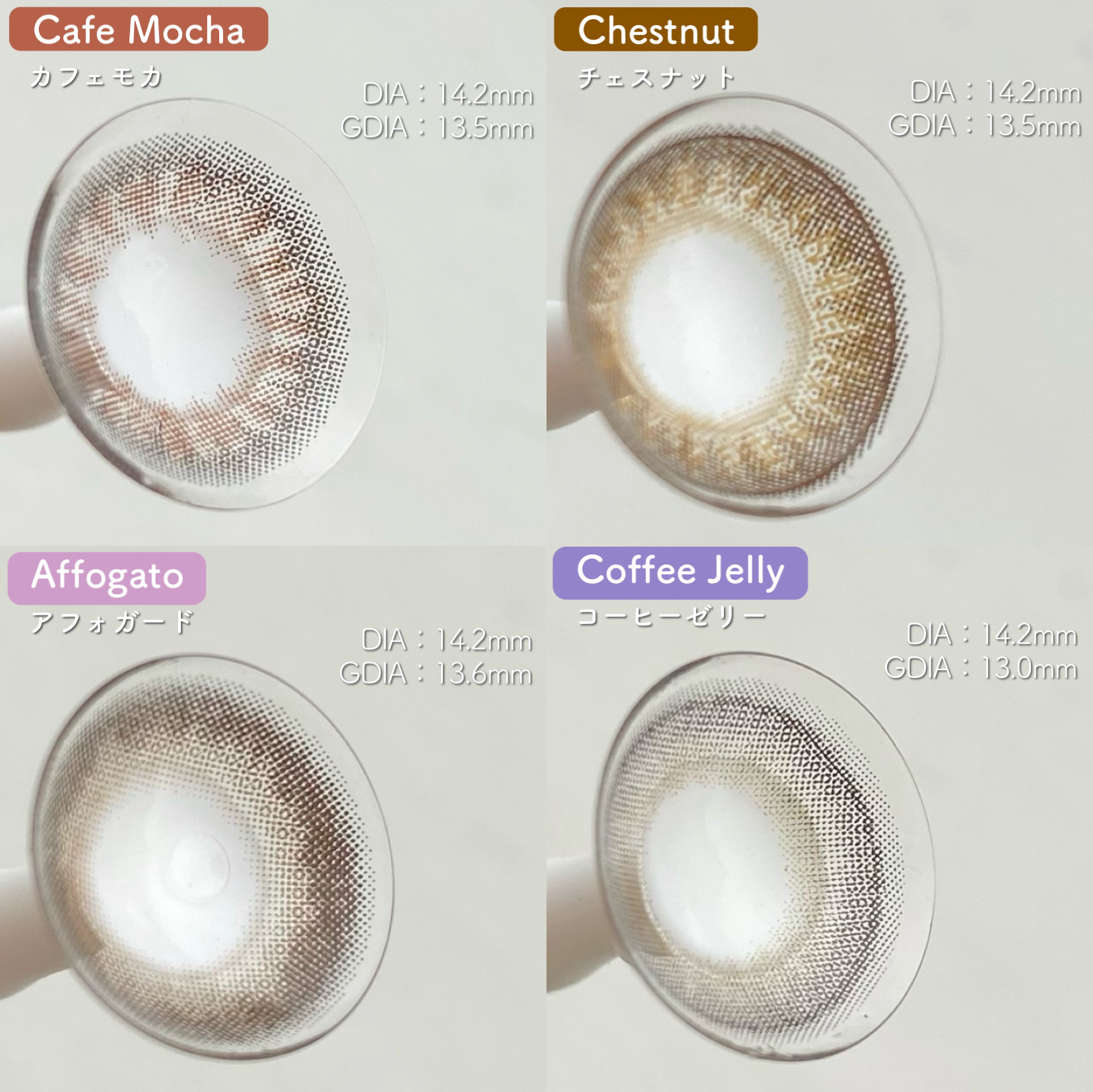 \feliamoから新色でたよ💌/🫧ブリュレパールちゅるちゅるに見えるブラウン×細フチであざとく盛れる清楚系レンズ♥🐩アーモンドプードルほんのり白っぽいグレージュのような色合いでしっかり発色◎大きめの着色直径でしっかり盛れる♥どちらも可愛らし...