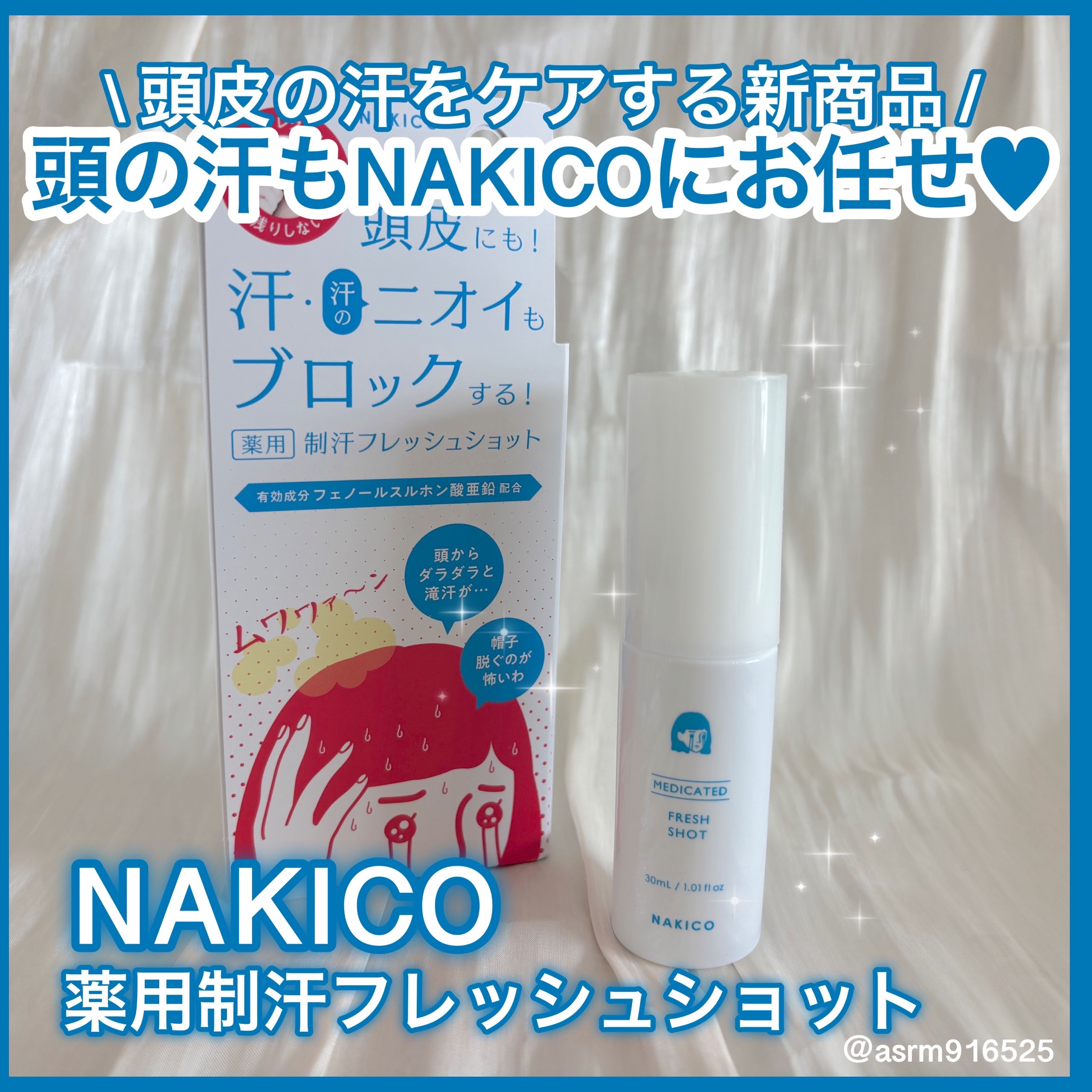 - 【医薬部外品】 日常の生活シーンでの気になる頭まわりのニオイや汗問題に着目。NAKICOの新作「薬用制汗フレッシュショット」はフェノールスルホン酸亜鉛とイソプロピルメチルフェノールのW主剤*配合の制汗ミストです。直接肌に届きやすいダイレクトノズル採用で使いやすい設計。メントール配合で清涼感もプラス。フレッシュグレープフルーツの爽やかな香り。 有効成分:フェノールスルホン酸亜鉛、シメン-5-オール